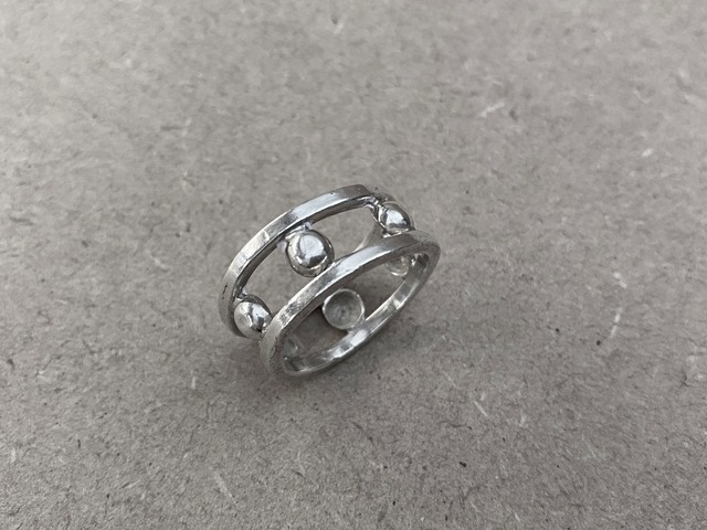 重さ: 6g サイズ: 17号 素材: Silver 925 カジュアルなデザインが魅力のSilver 925 Vintage Mexico Beaded Band Ring。イギリスで厳選して買い付けたこのメキシカンリングは、ビーズのような丸い玉が連なったデザインが特徴で、メキシコのホールマーク付きです。シルバー925を使用し、スタイリッシュでありながらも、重ね付けしても存在感があるのが魅力です! ■ カラー/サイズ/バリエーション ・シルバーの美しい輝きが際立っており、幅広いシーンでお楽しみいただけます。お手持ちのリングとの重ね付けにもぴったりで、あなたのスタイルを引き立てるアクセサリーとして活躍します。 ■ 素材/製造国 ・高品質なシルバー925を使用。この商品はイギリスからの特別な買い付けによる一点物で、メキシカンデザインの魅力を存分にお楽しみいただけます。 ■ お手入れ/取り扱い注意事項 ・日常のお手入れには柔らかい布をご利用ください。水分や化学薬品との接触を避け、使用後は優しく乾拭きすることをおすすめいたします。また、長期間使用しない際には、湿気の少ない場所での保管が最適です。 ■ 発送・注文に関する情報や注意事項 ・ご注文確認後、迅速に発送手続きを行います。配送に関する詳細はご注文時にご確認ください。特別なギフトラッピングのご要望もお気軽にお知らせください。 ■ その他の情報や注意事項 ・この商品は一点物であるため、個体差があることをご理解いただければ幸いです。特別なリングを手に入れ、一層の喜びを感じていただければと思います。ご質問がございましたら、ショップのお問い合わせページよりお気軽にどうぞ。あなたのもとに、この魅力的なリングが届くことを心待ちにしております!