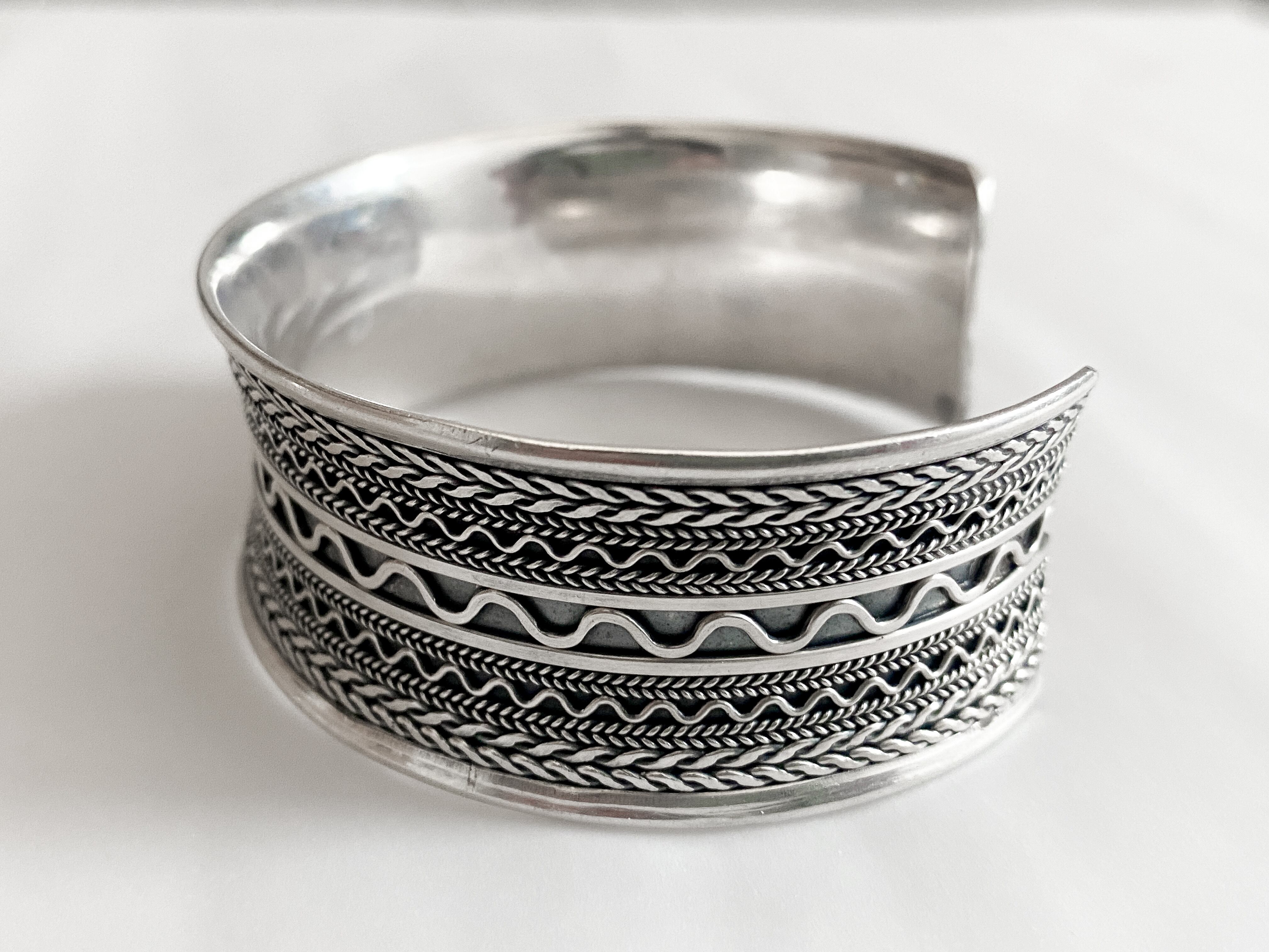 ・シルバー925を使用。このバングルは特別な買い付けによる一点物で、そのユニークな魅力を存分にお楽しみいただけます。silver 925のため、長くご愛用いただける安心感も魅力です。