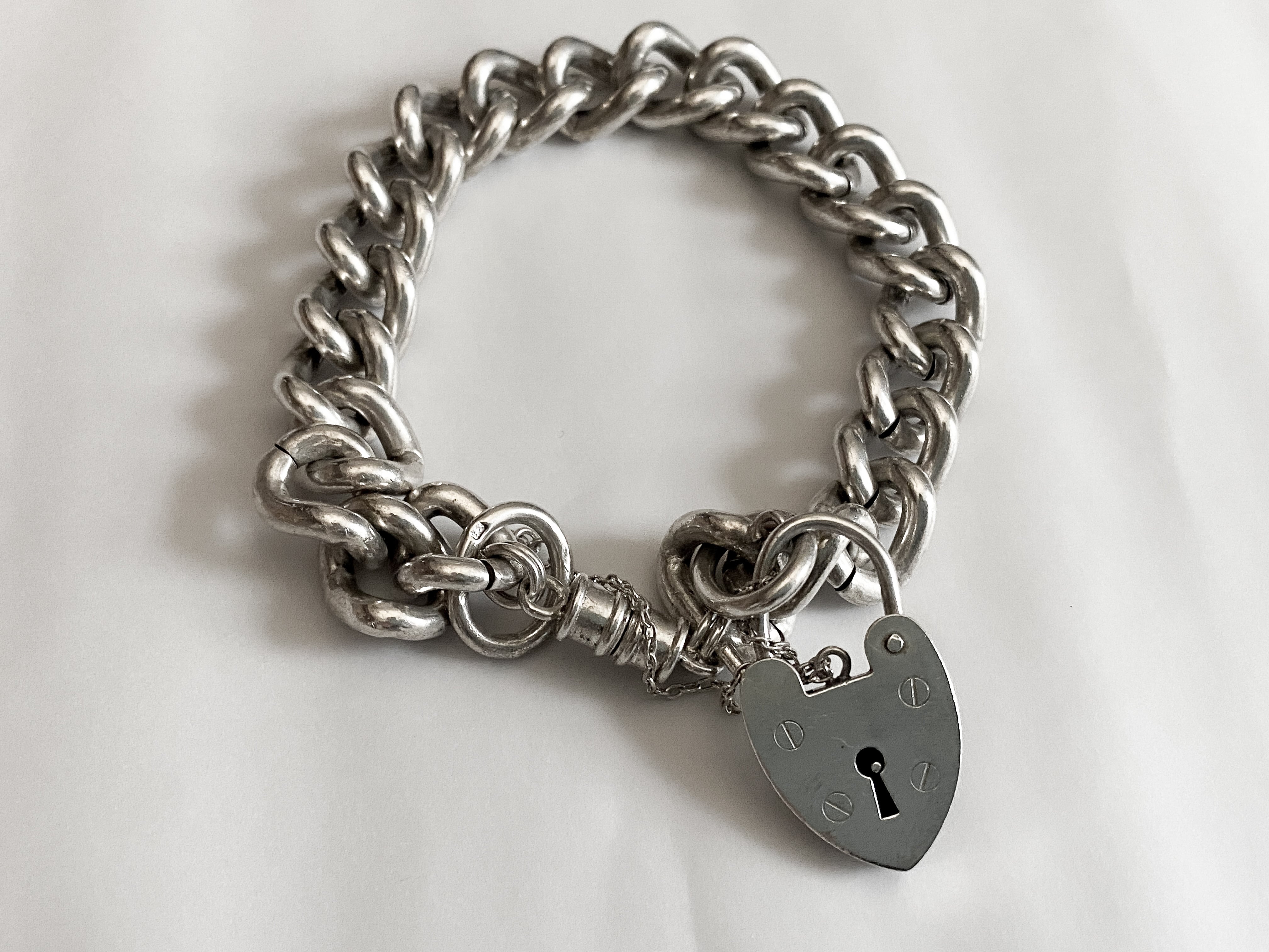 商品名:Silver 925 Heart Padlock Chunky Chain Bracelet