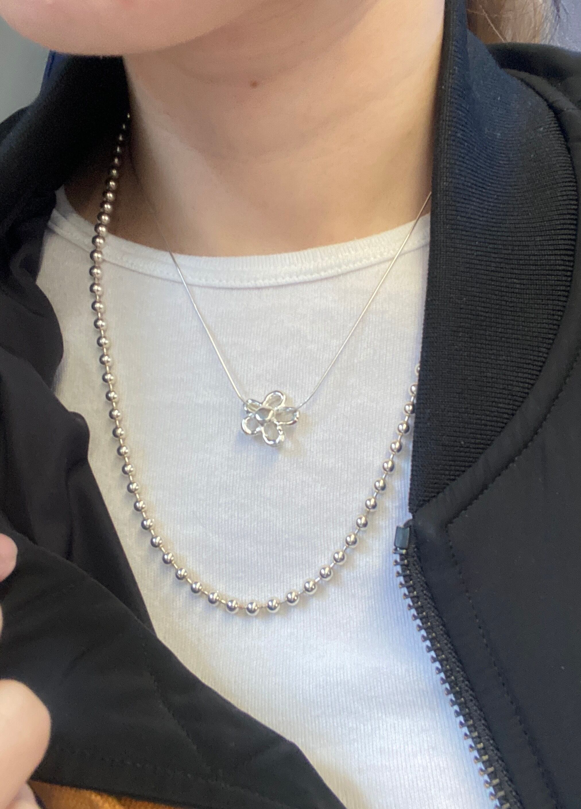 ・シンプルでありながら存在感のあるボールチェーンデザインが、身に着ける人のスタイルに華やかさをもたらします。日常使いにぴったりのアイテムとしてもおすすめです。