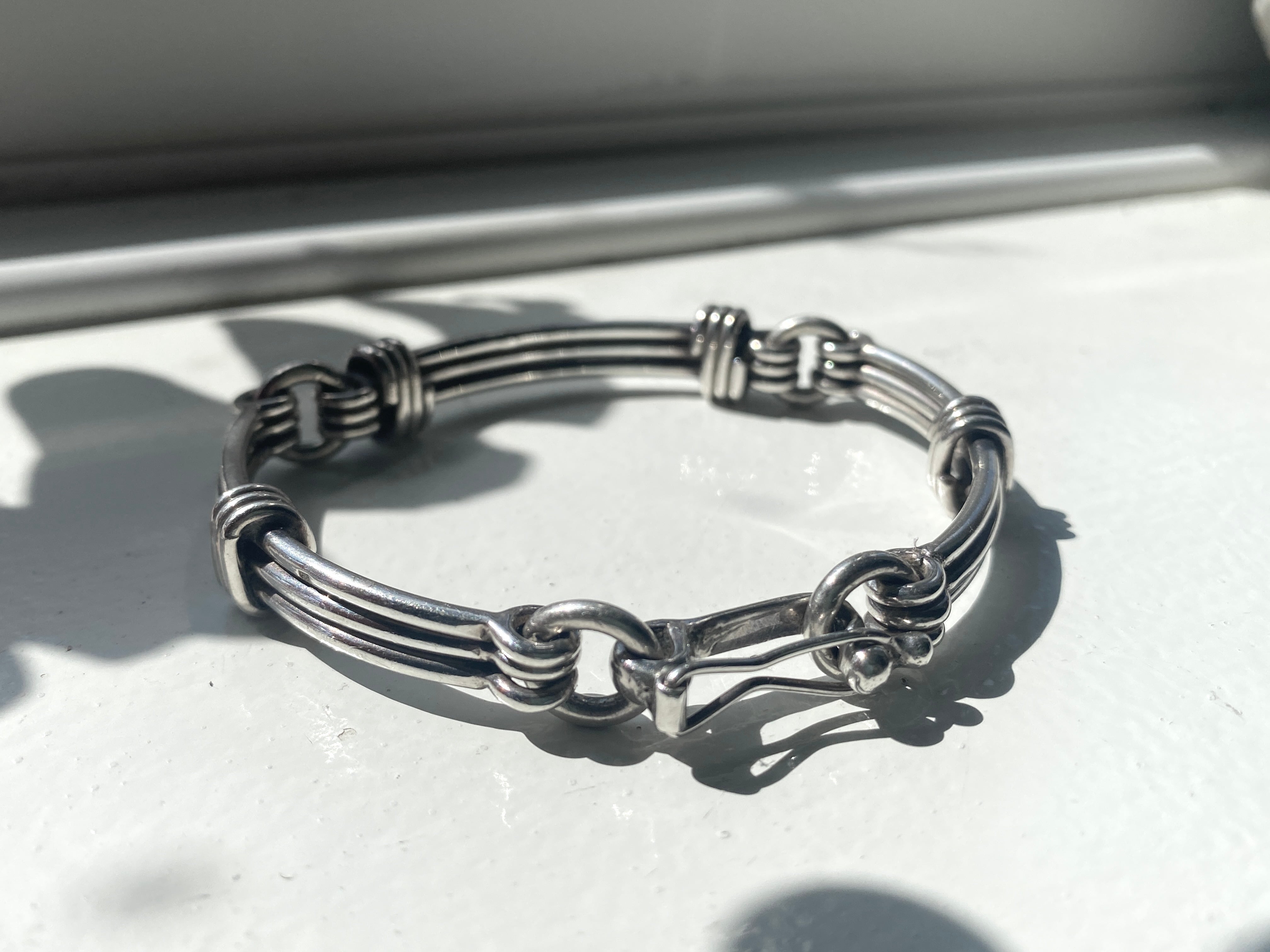 (B-57) Silver 925 Curved Bar Chain Bracelet