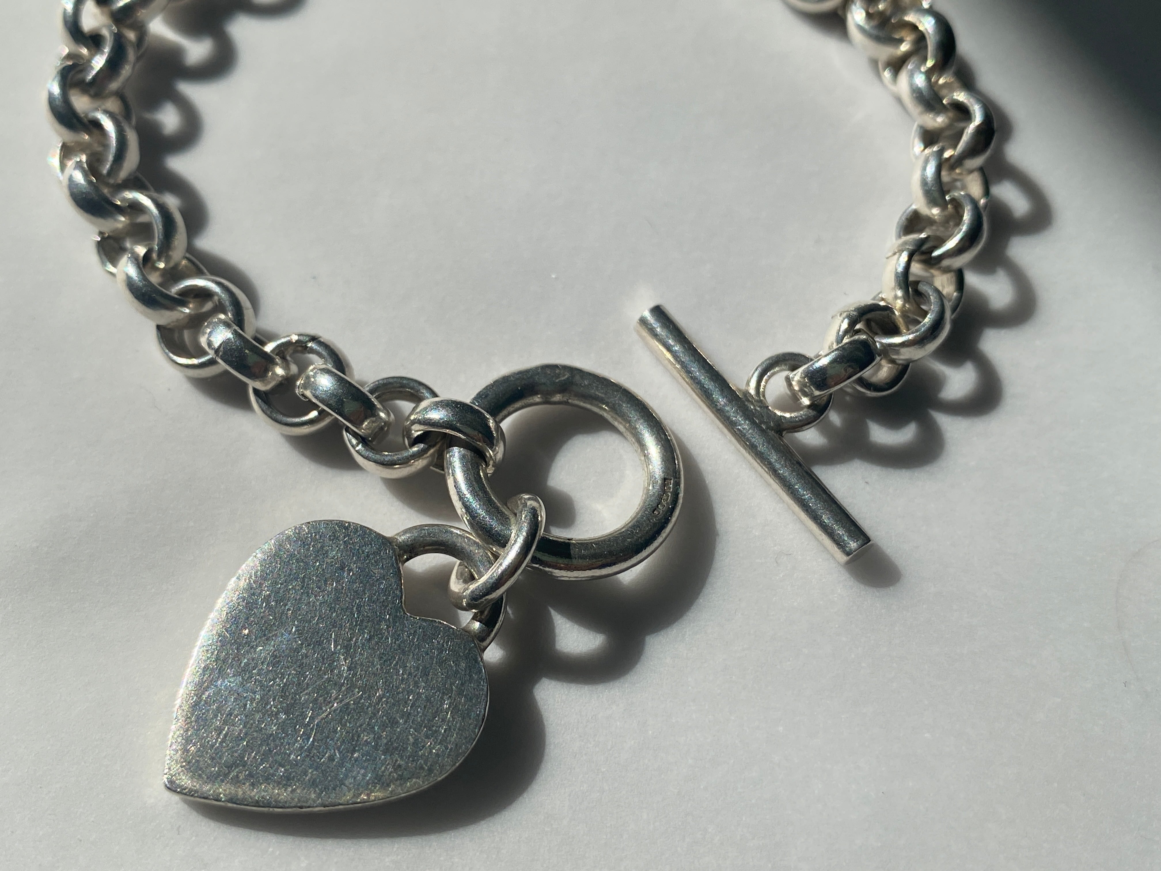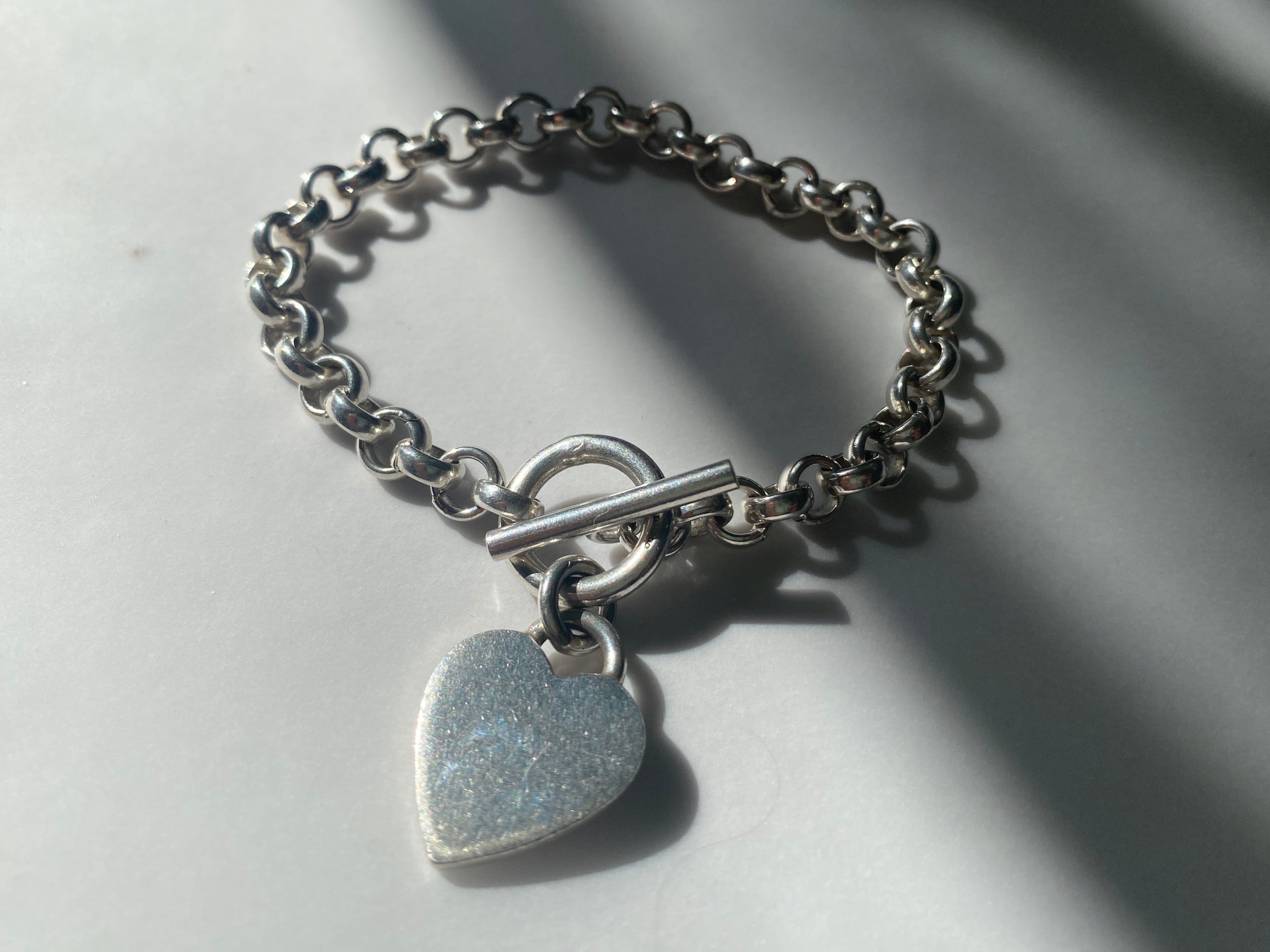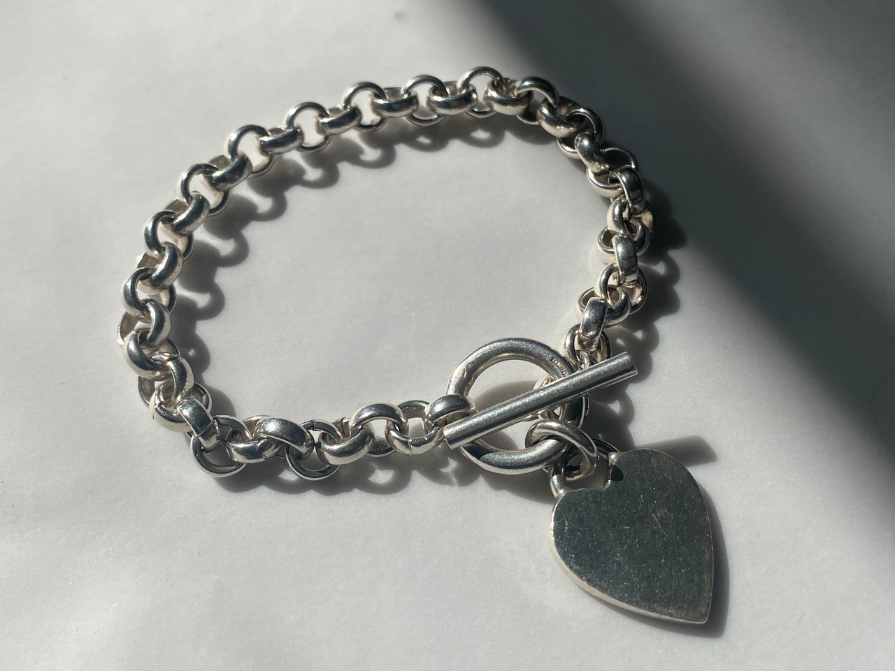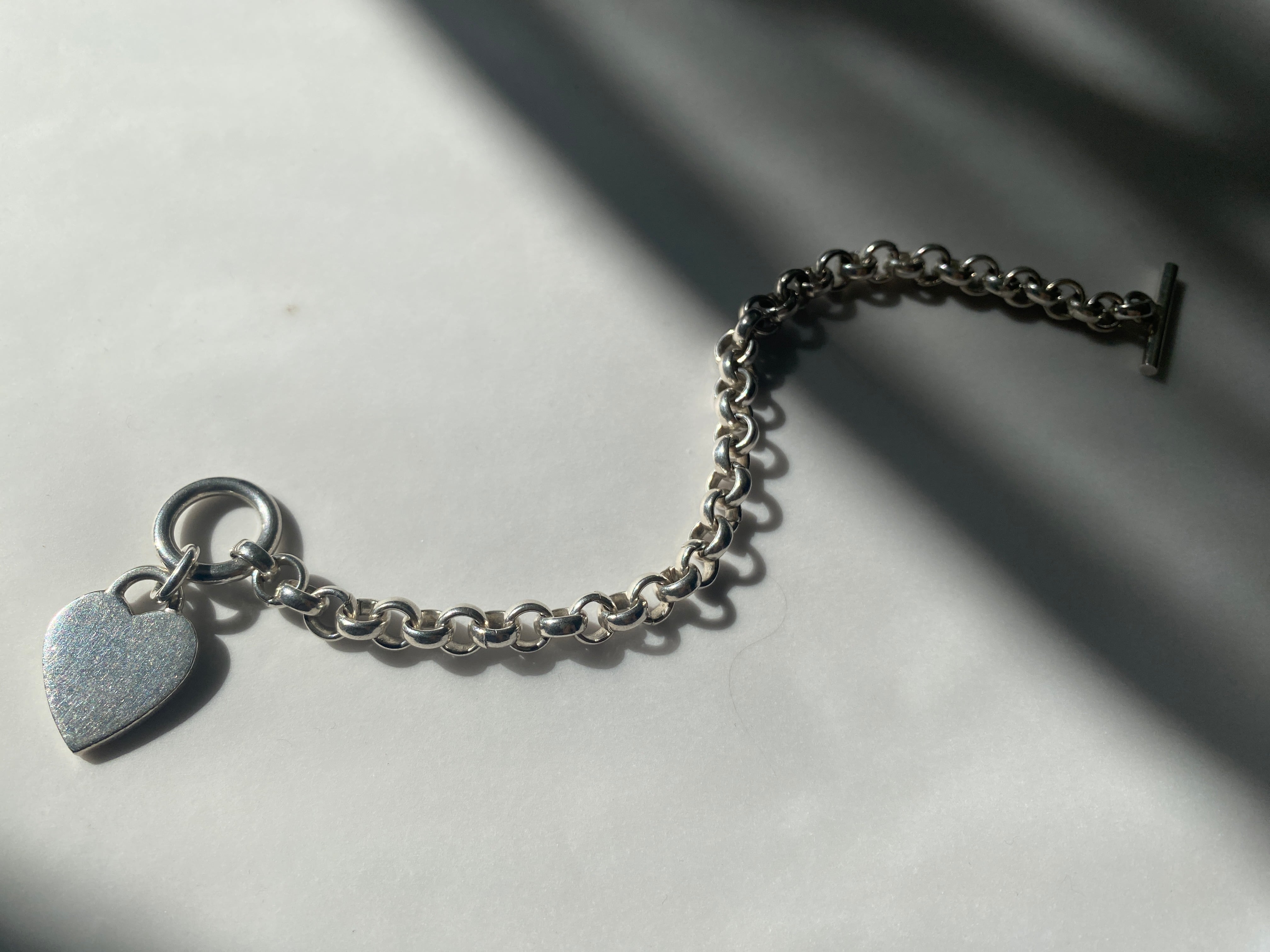 Silver 925 英国刻印 Heart Charm Chain Bracelet