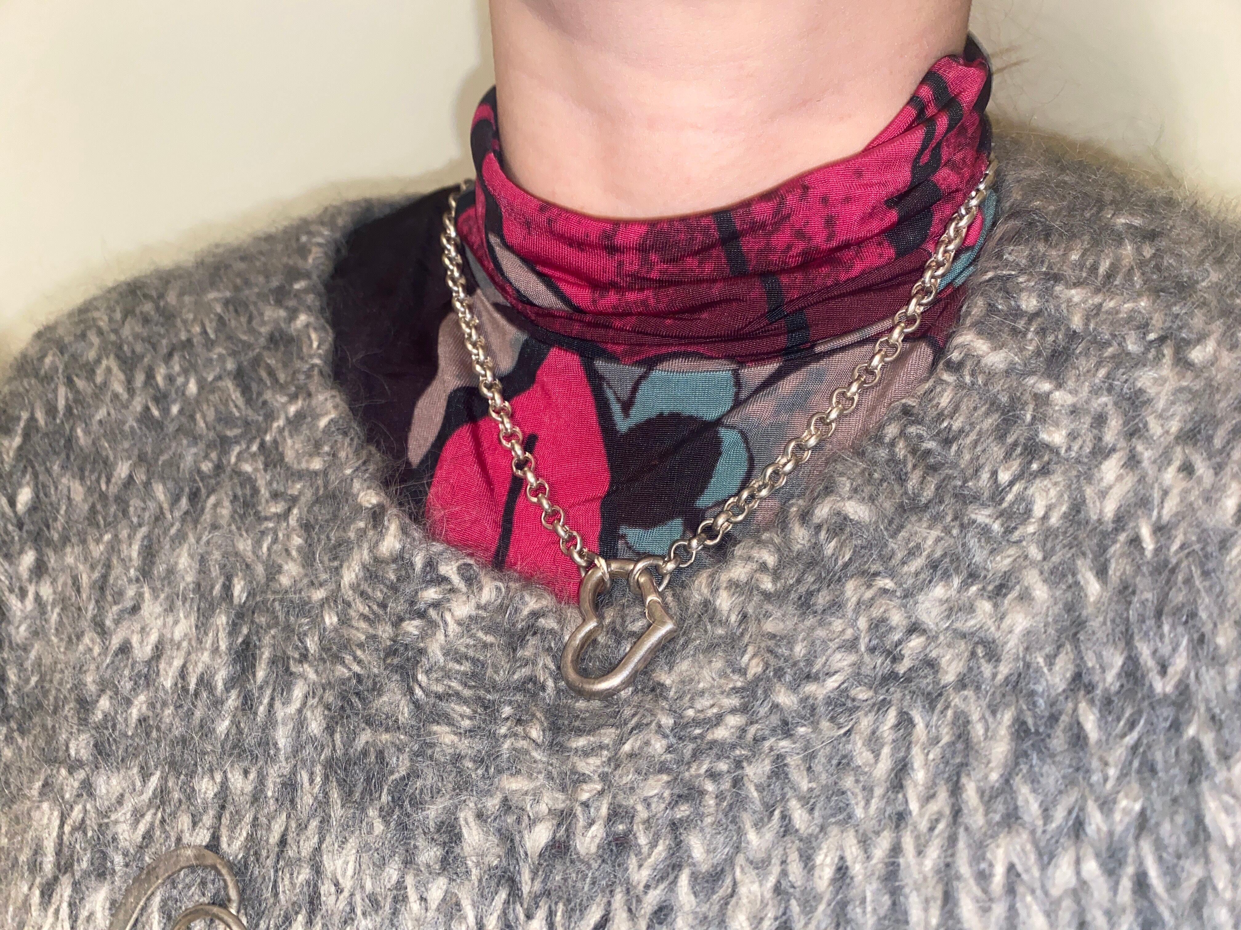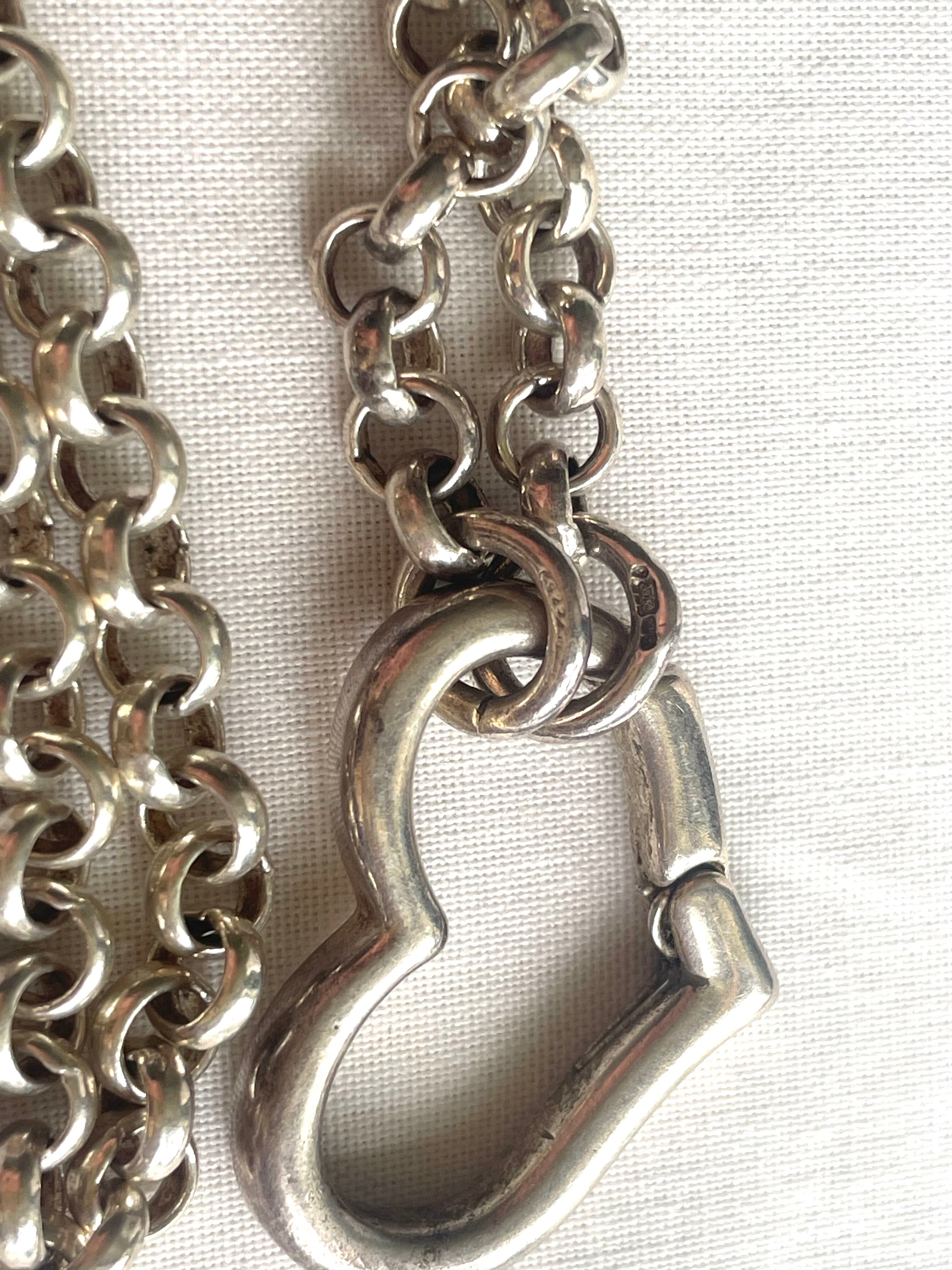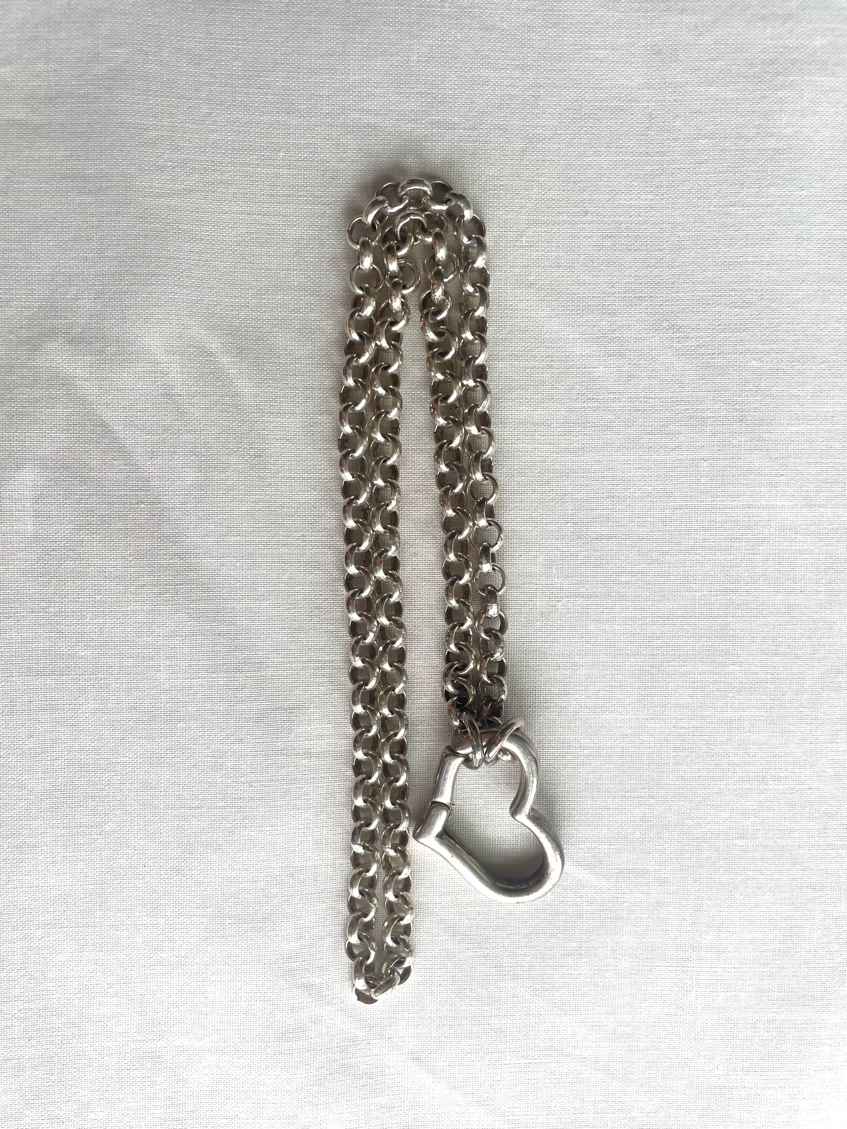 無骨なラウンドチェーンと存在感のあるハートカラビナが印象的。