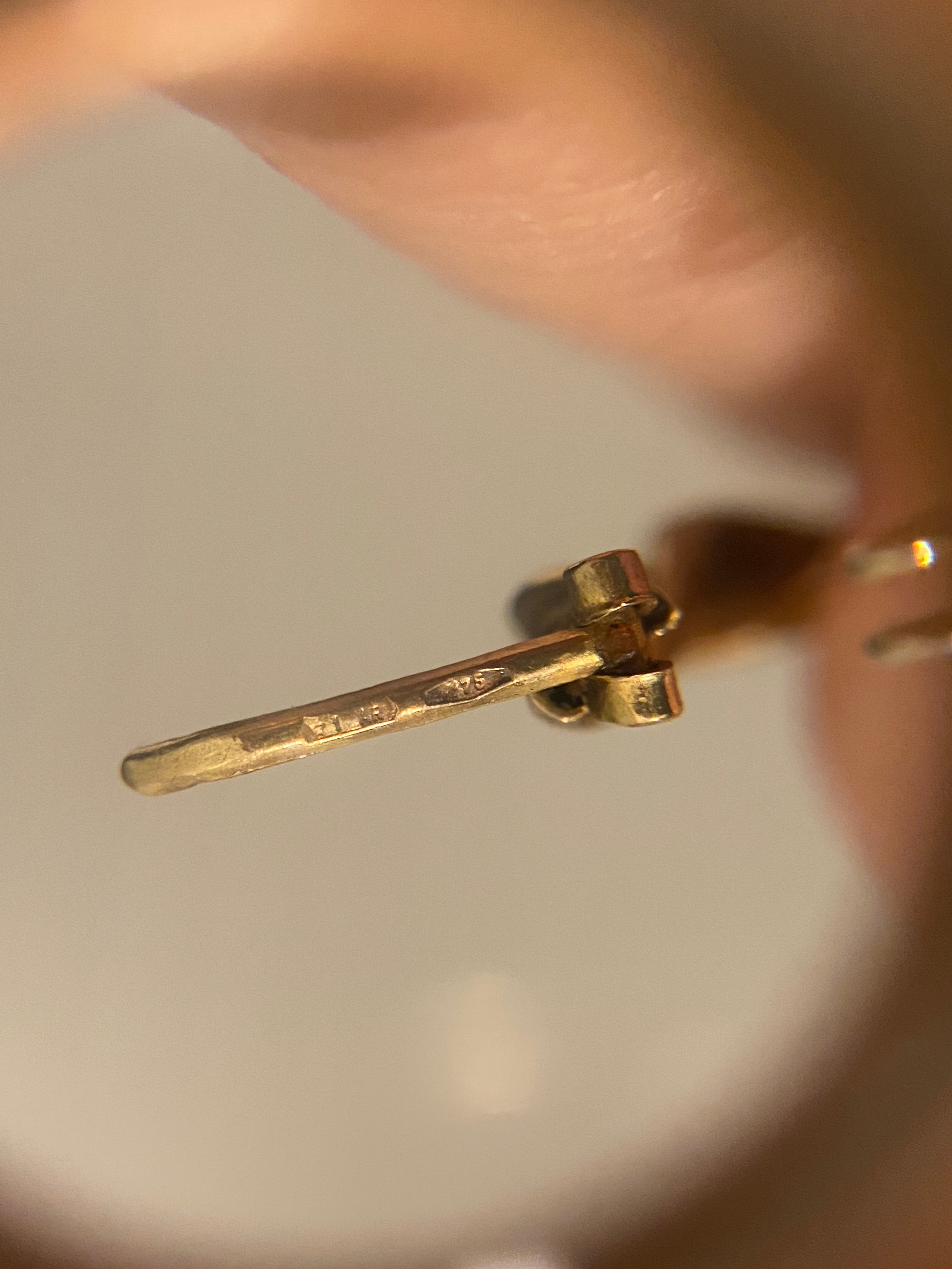 フープ部分のポストには 「375」刻印(=9金) があり、