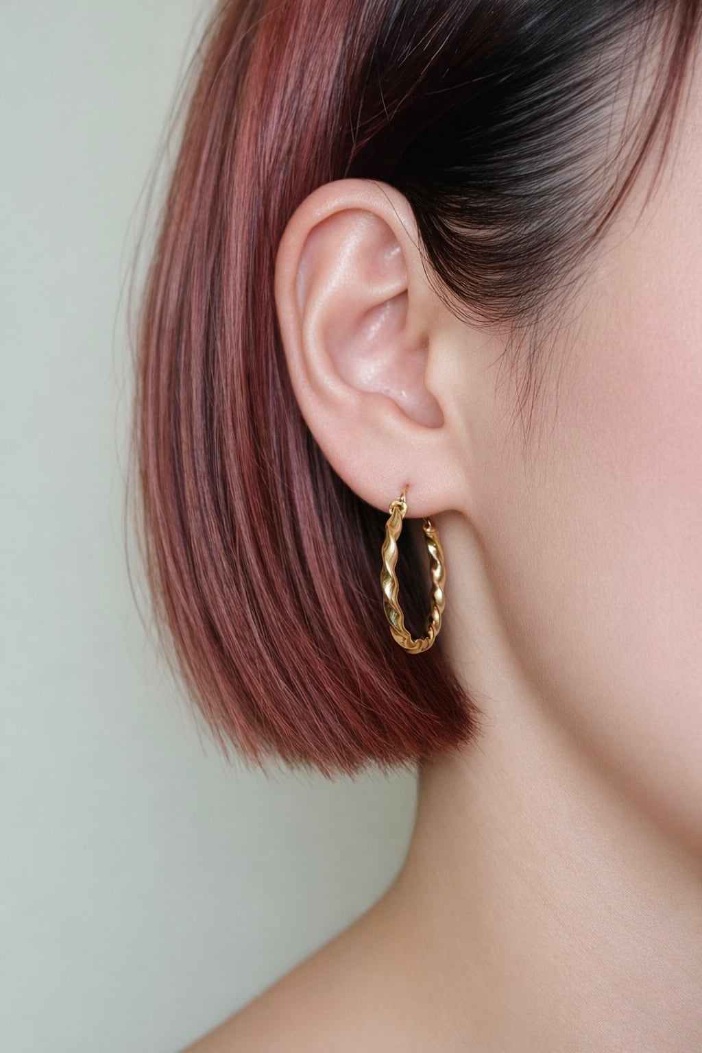 細かいロープ状のツイストデザインが耳元で立体的な陰影を作り、