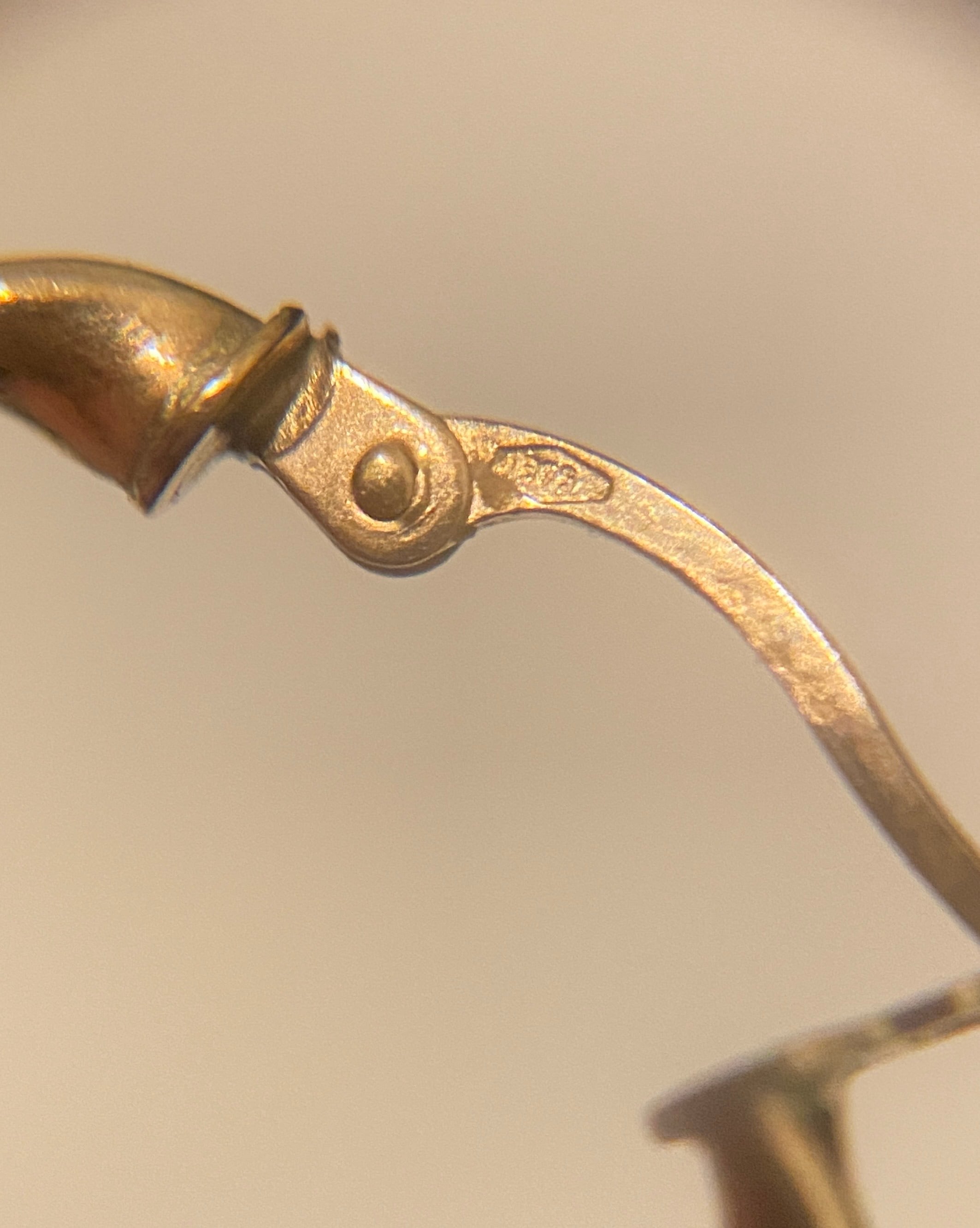 ポスト部分には 「375」刻印(=9金) と、イギリス特有のシールド型ホールマークが確認できます。