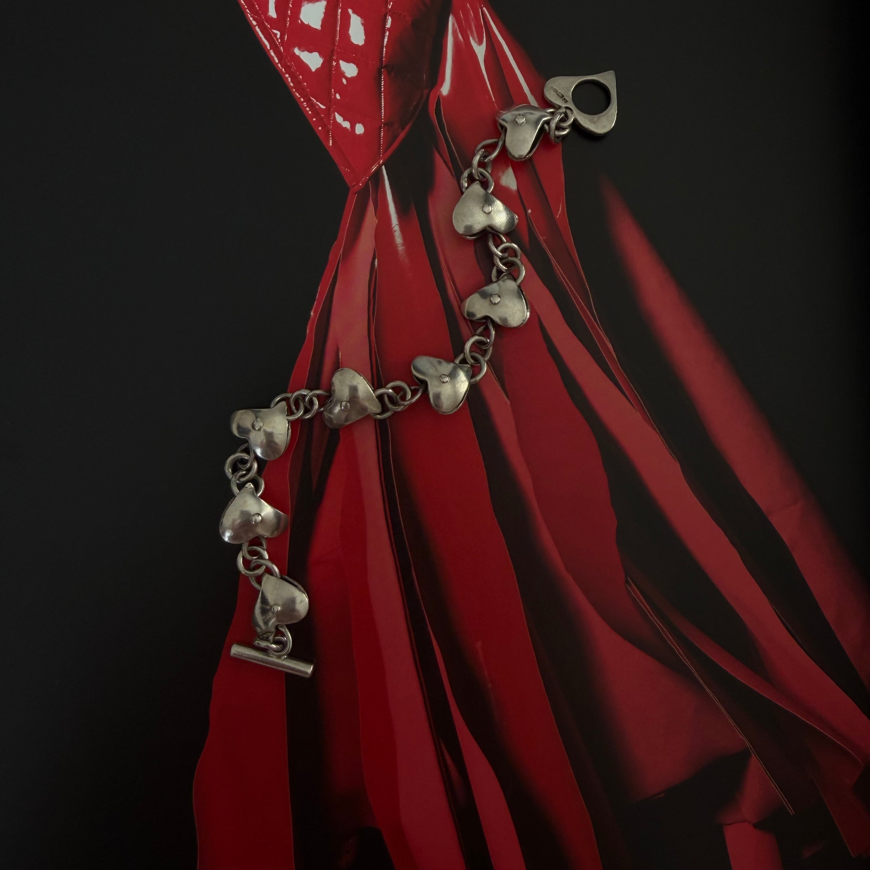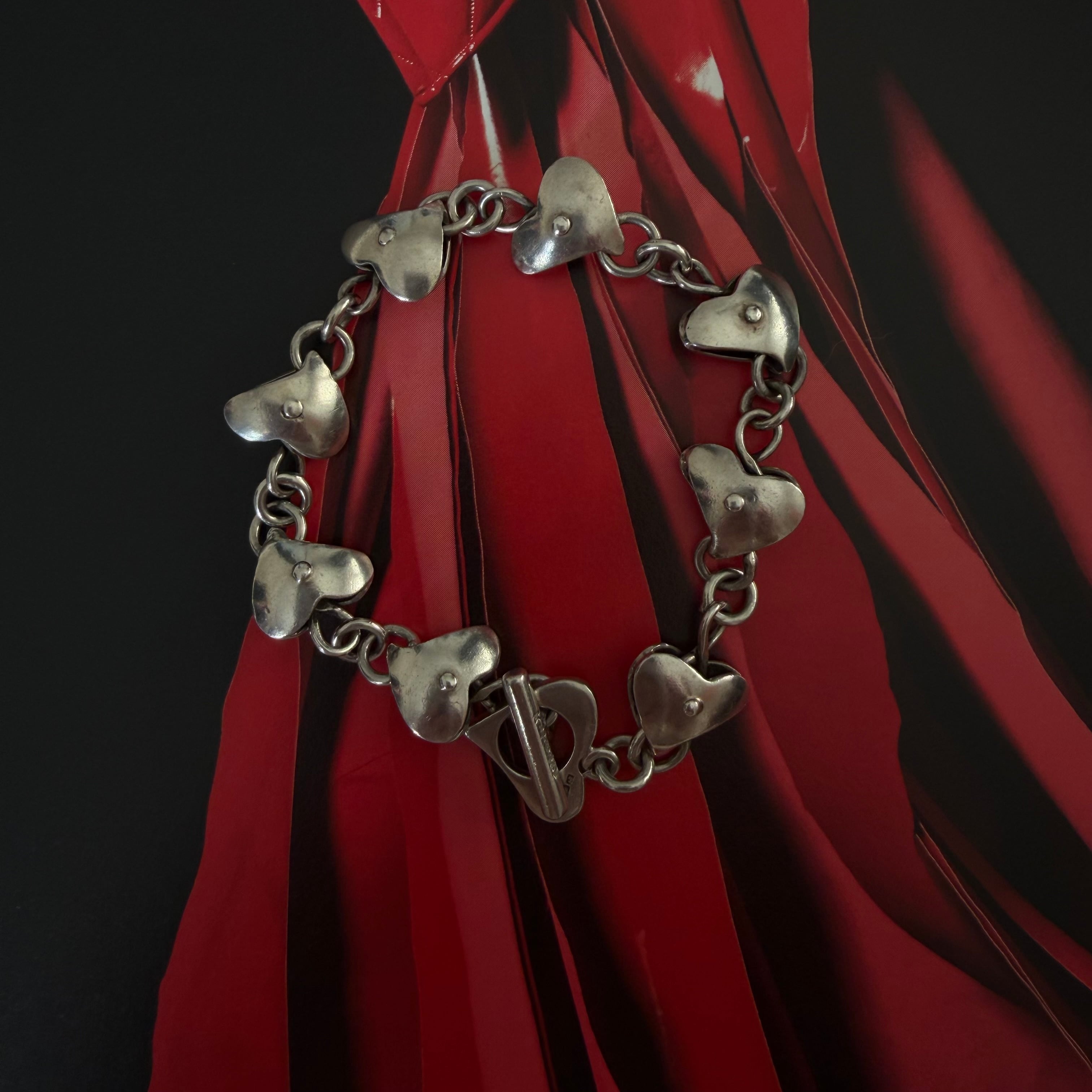 存在感のあるハートモチーフが連なった、ヴィンテージのスターリングシルバーブレスレット。