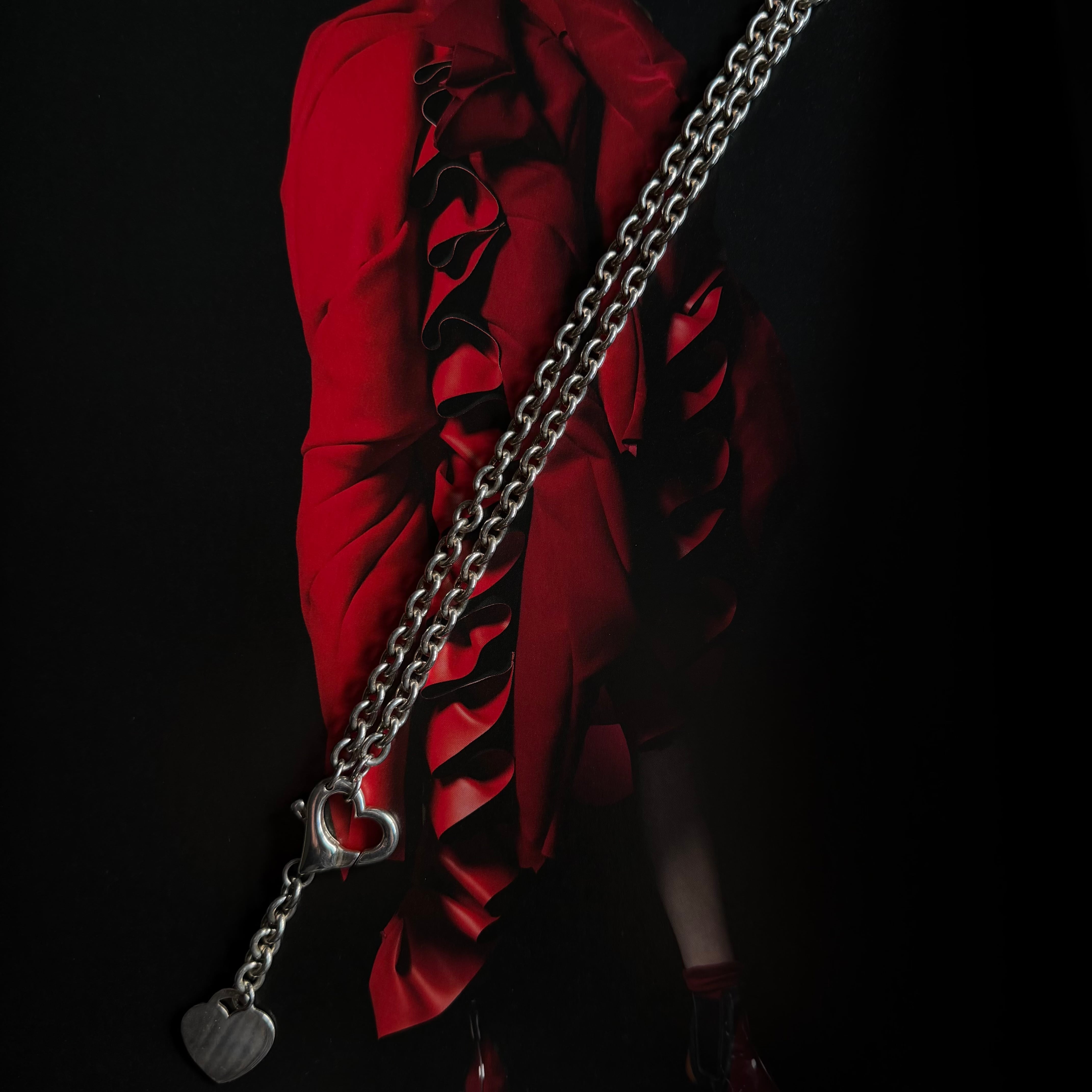 しっかりとしたリンクチェーンは首元に立体感を生み、