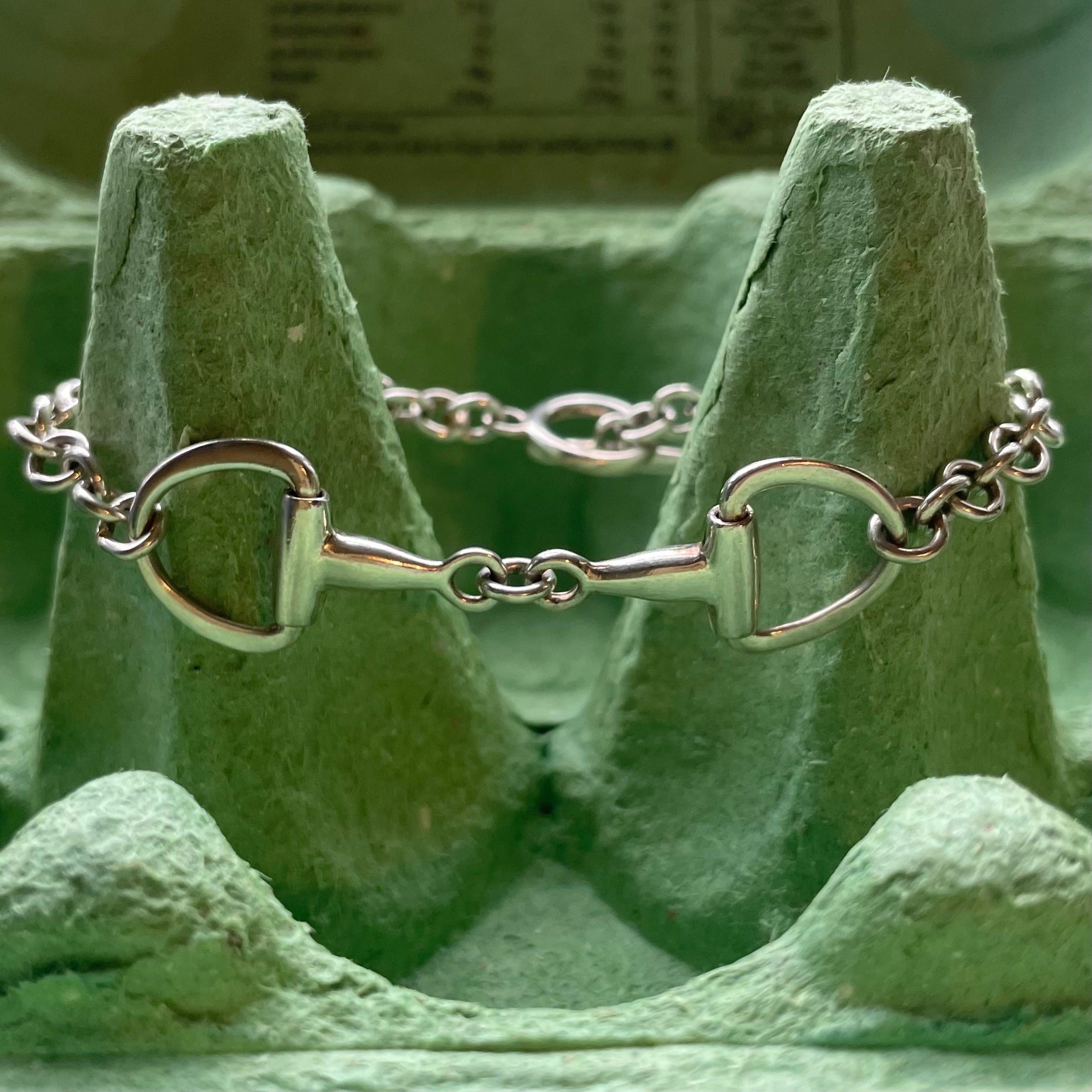 クラシックなホースビットモチーフが印象的な、ヴィンテージのスターリングシルバーブレスレット。