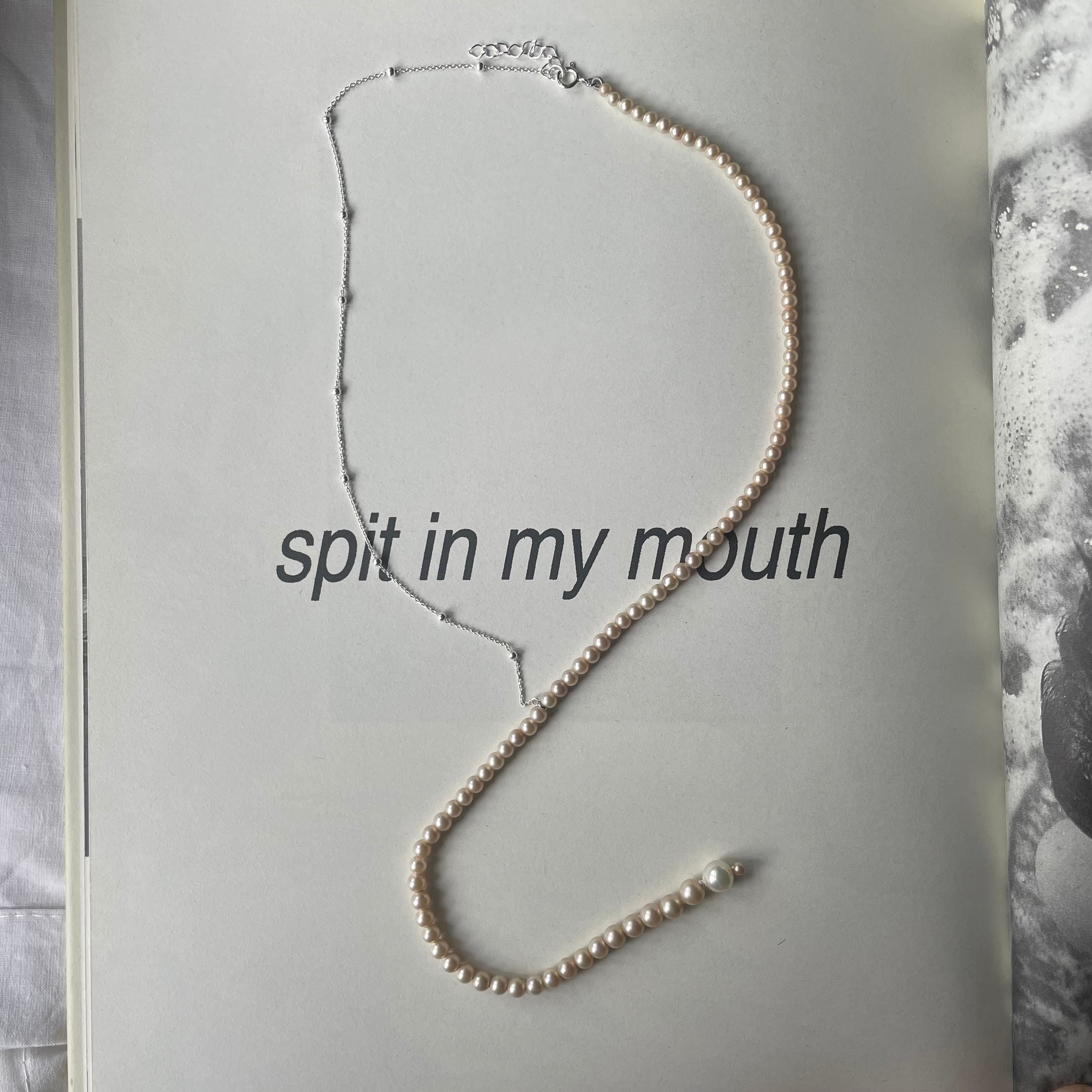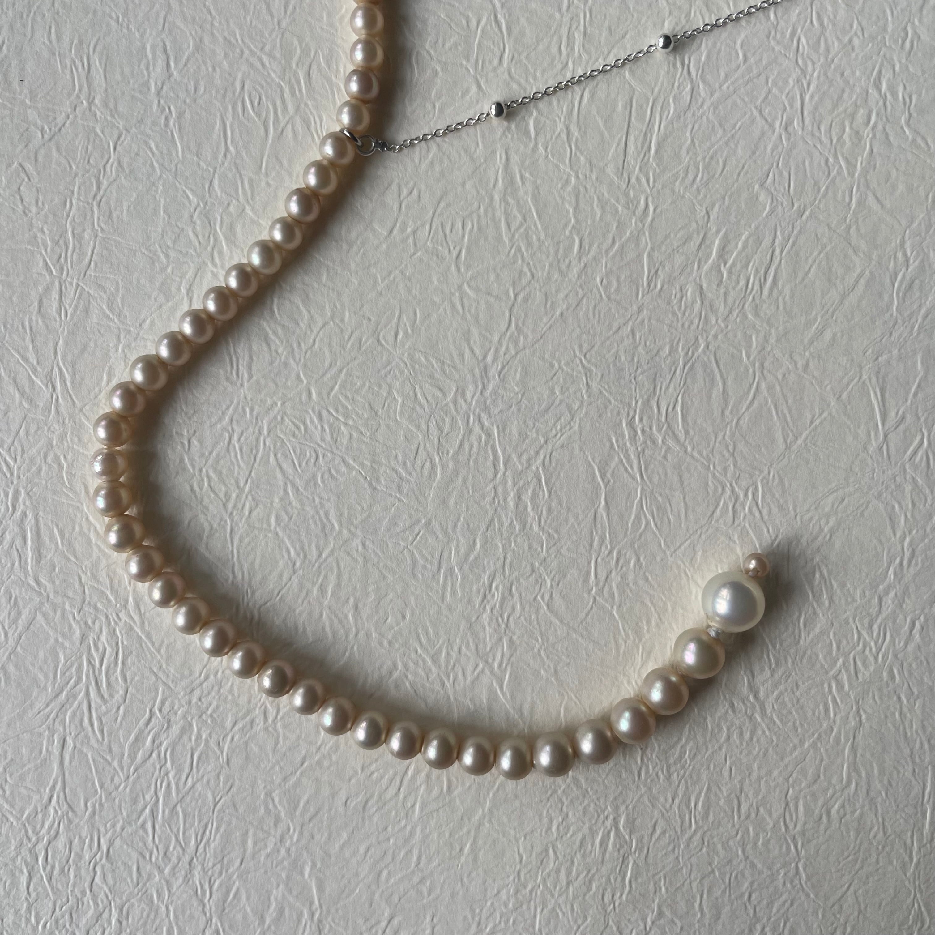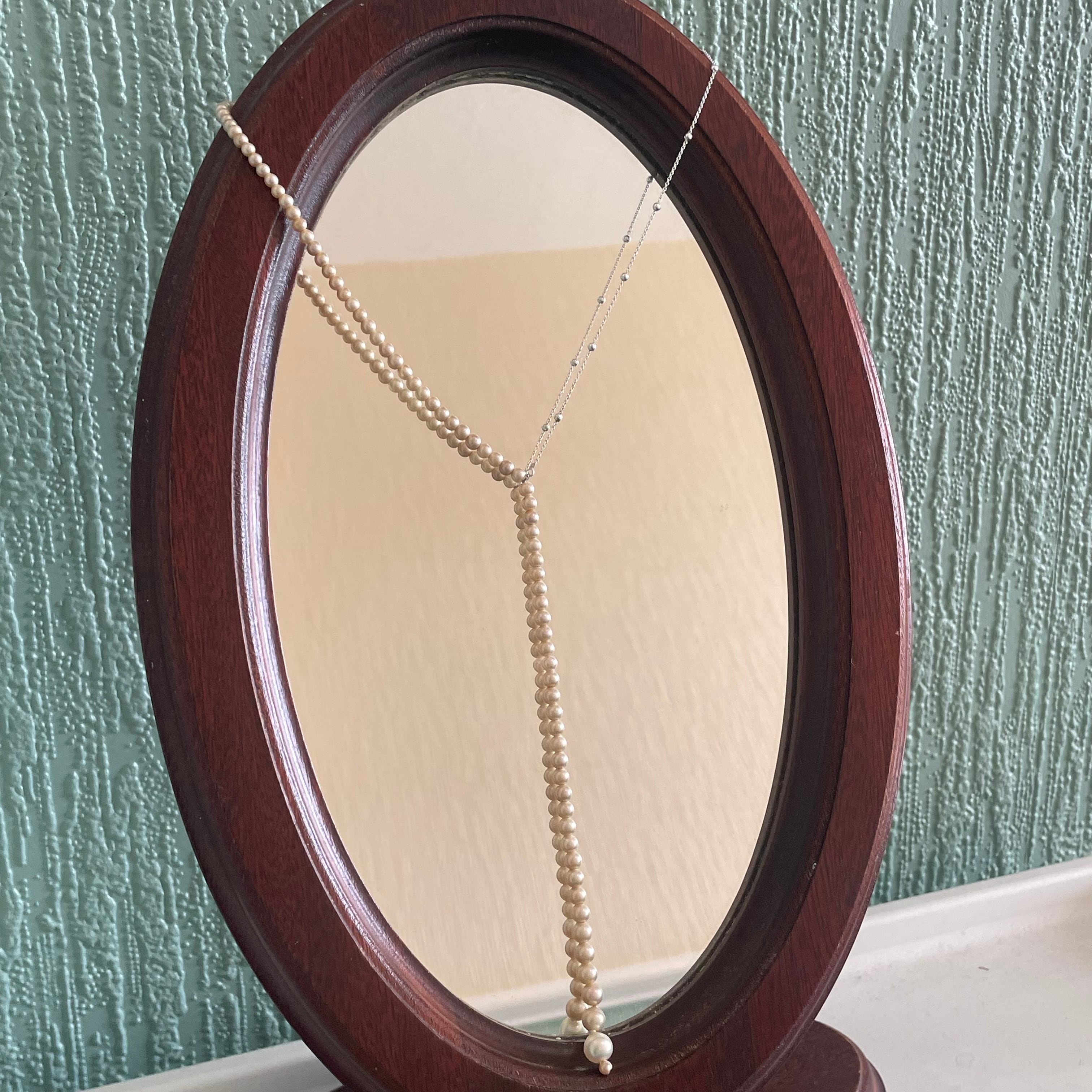 Upcycled Vintage Pearl & Sterling Silver 925 Y Necklace