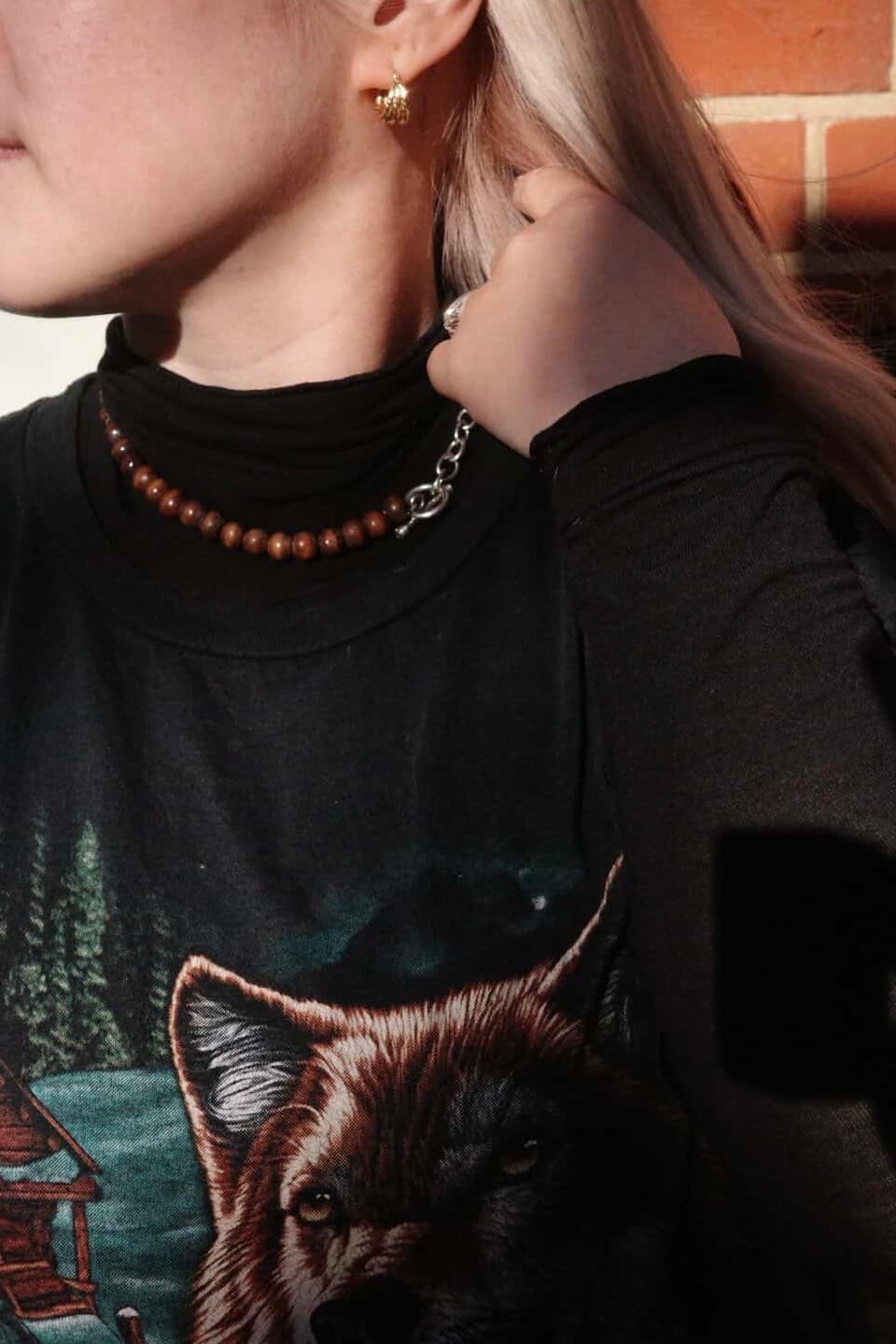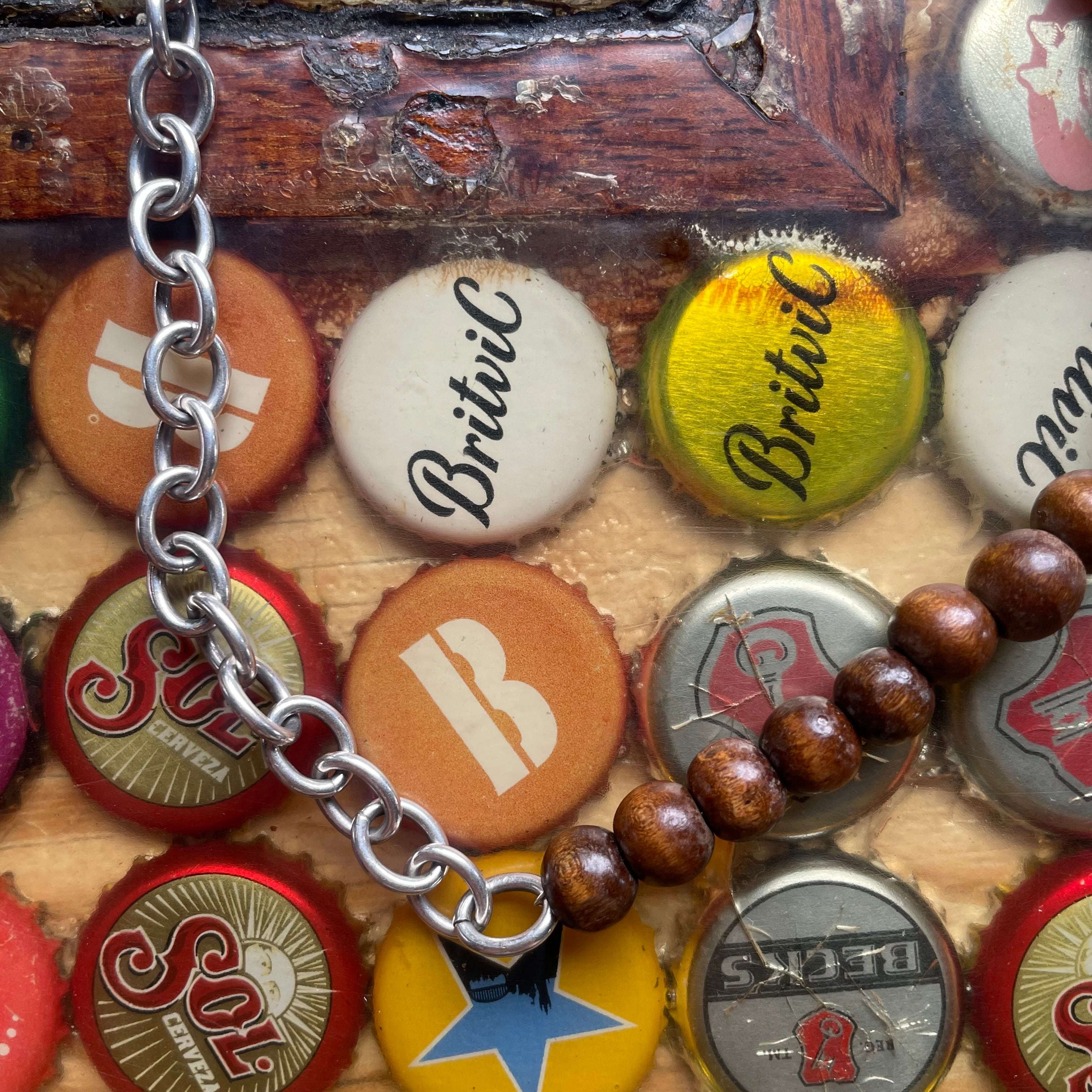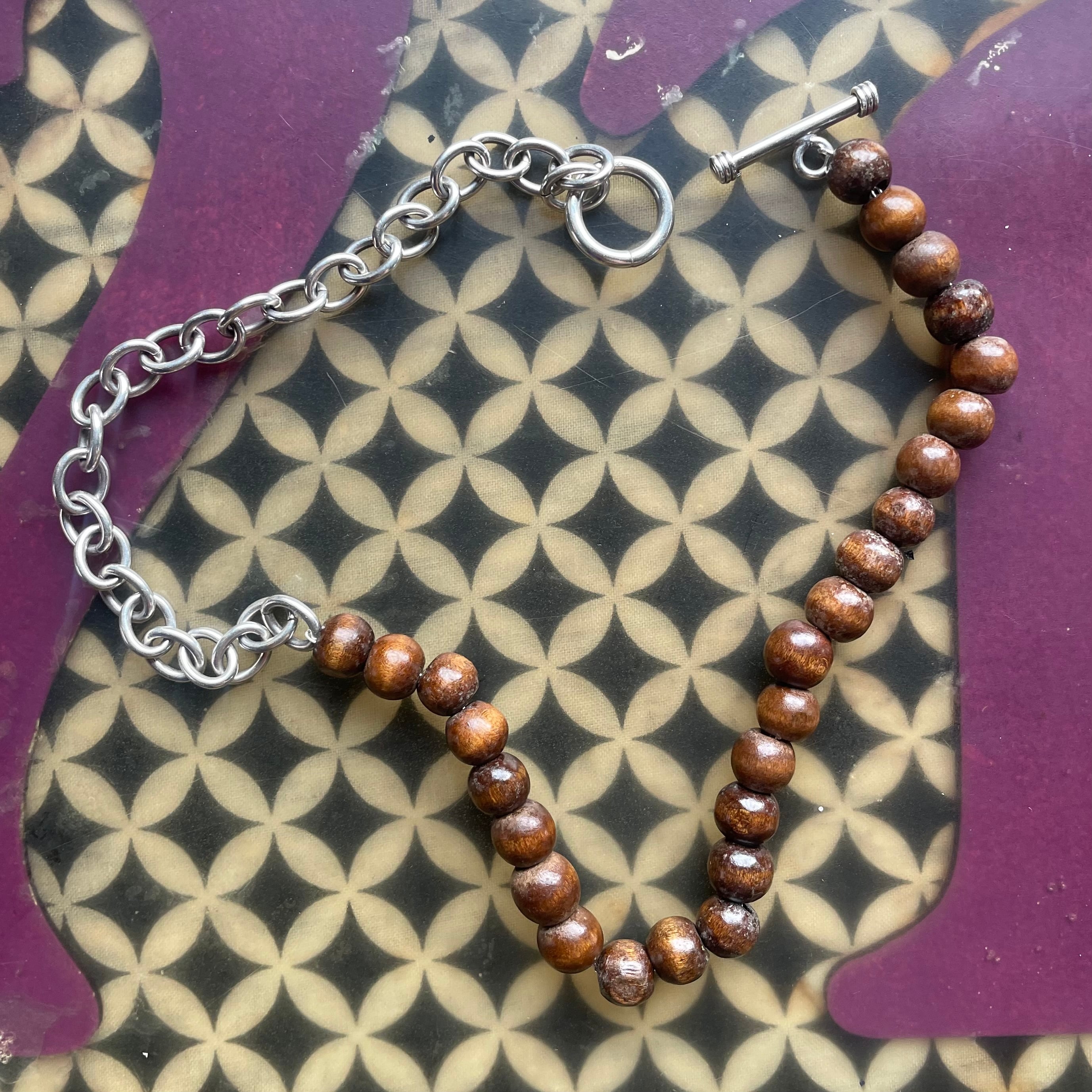 Upcycled Vintage Wood Bead & Sterling Silver 925 Toggle necklace