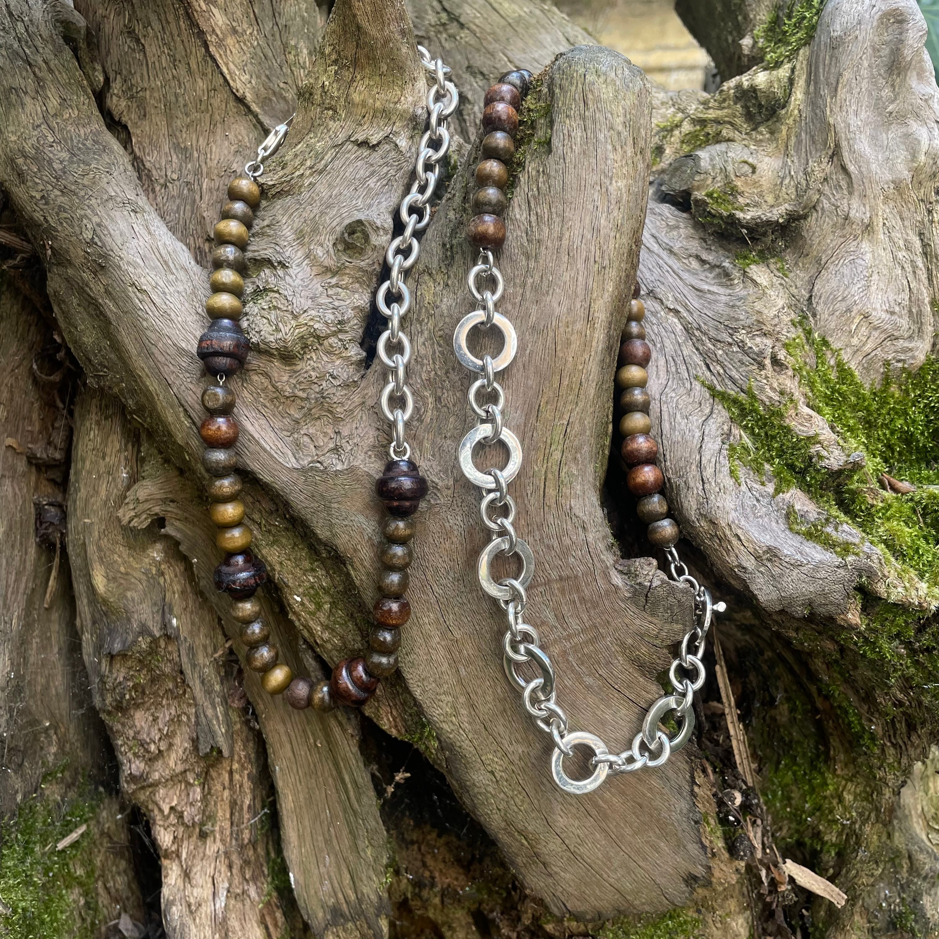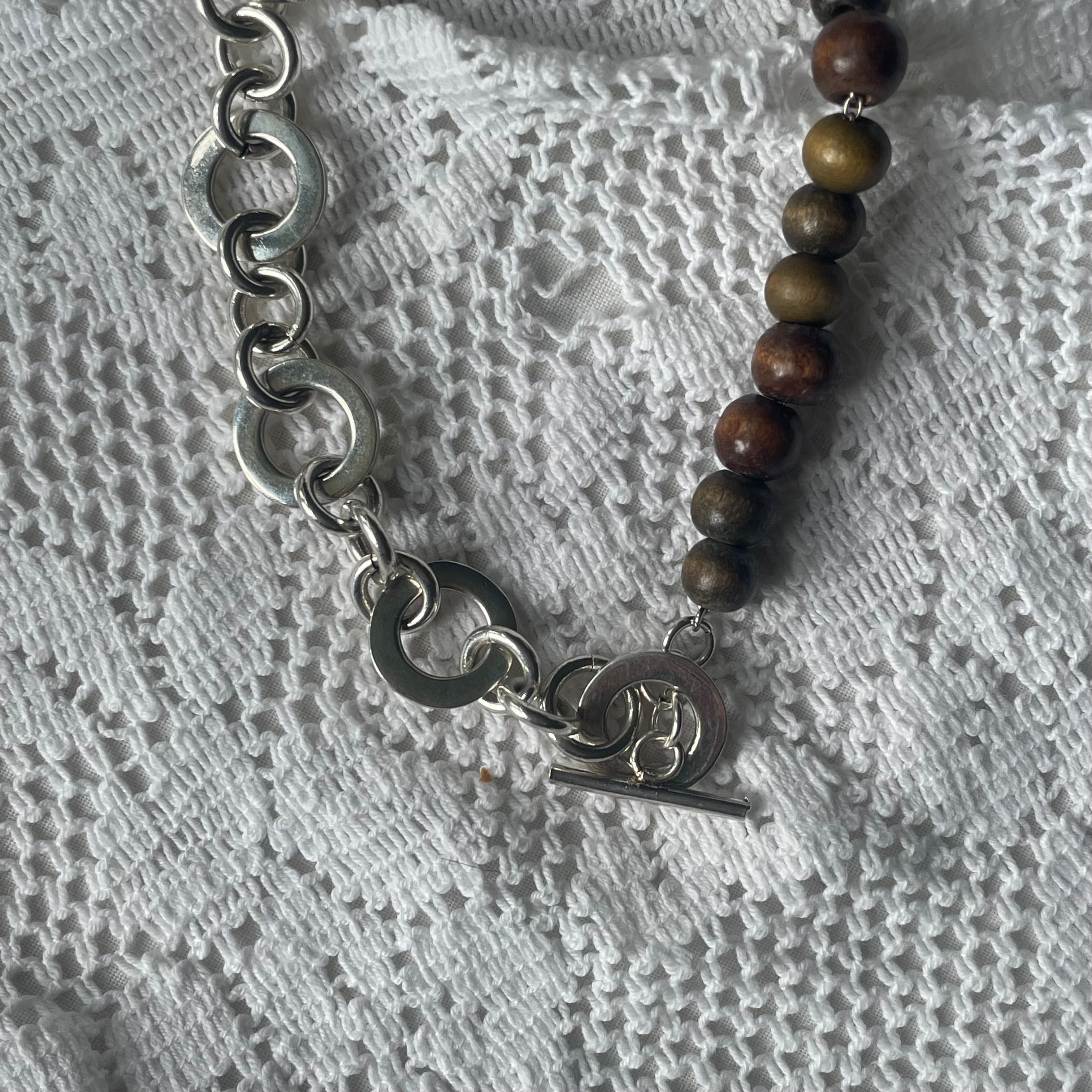 ②Upcycled Vintage Wood Bead & Sterling Silver 925 Toggle necklace