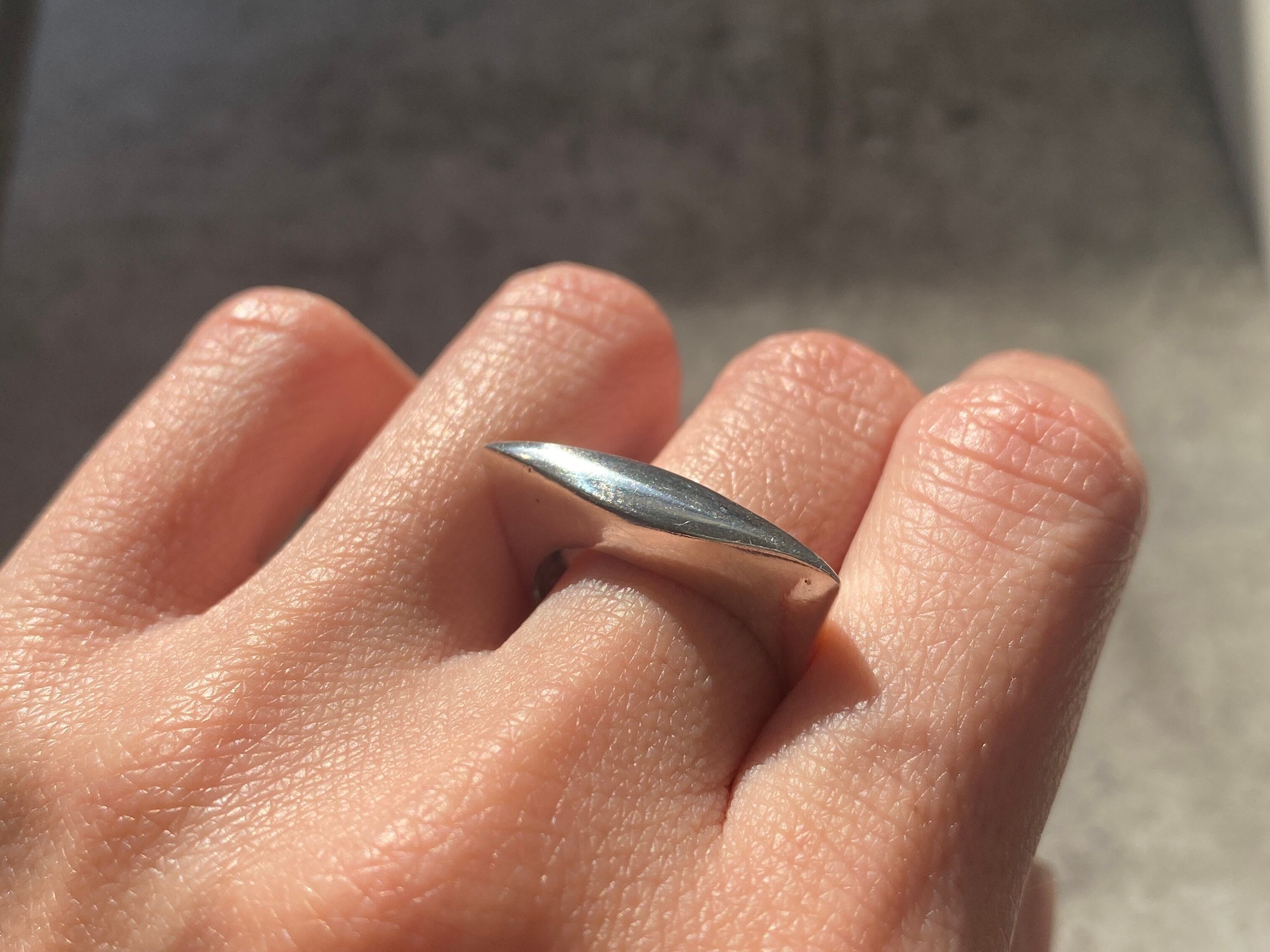 手元を華やかに演出するsilver 925 vintage thin ring。イギリスのアンティーク市場で厳選したこのリングは、ユニークなデザインが特徴的で、少し華奢な印象を与えます。どんな装いにも合わせやすく、普段使いにも特別な日にもお気軽にお楽しみいただけます。シルバー925を使用しているため、耐久性にも優れています。まさに、ファッションと心地よさを両立した一品です。