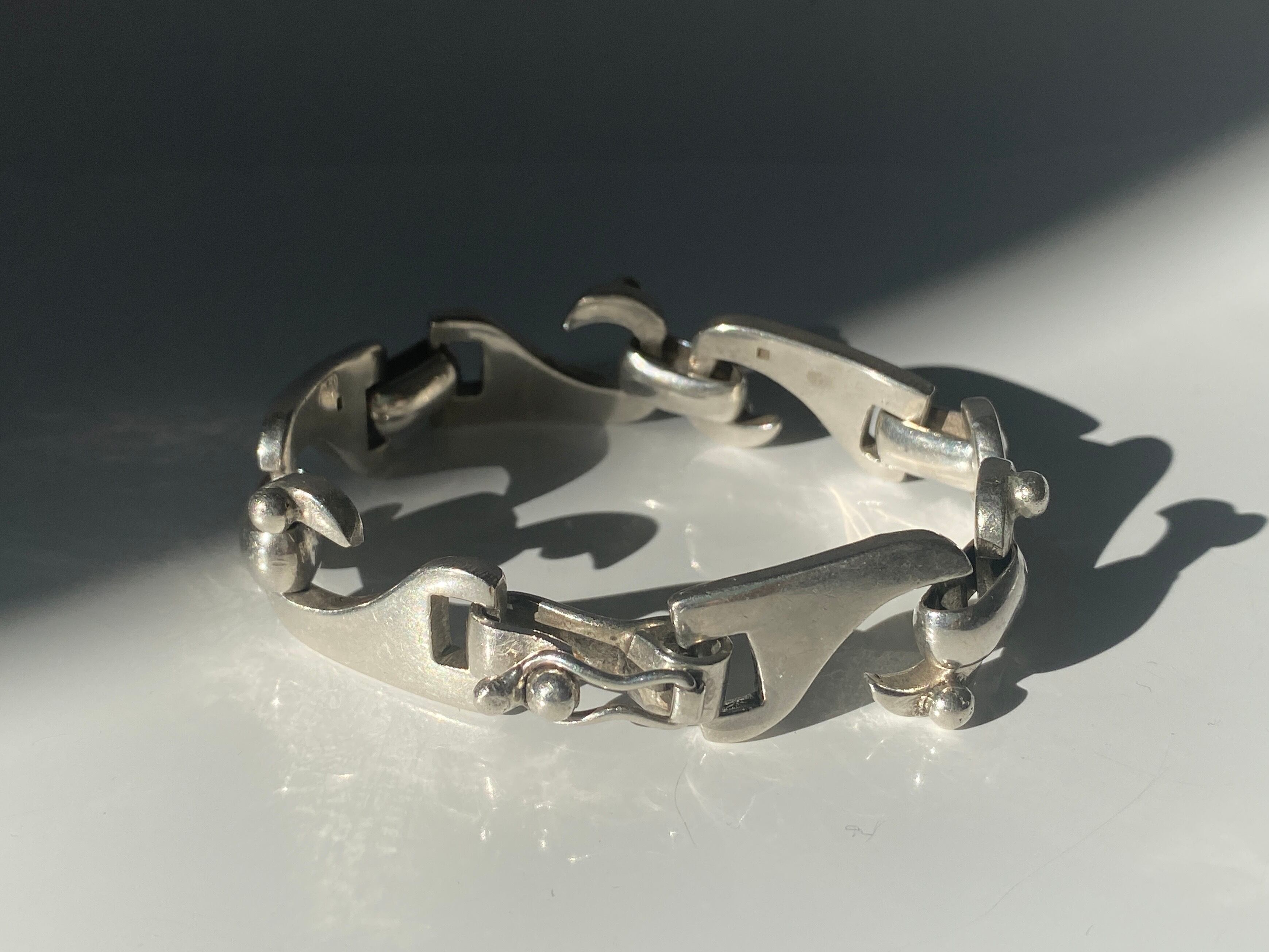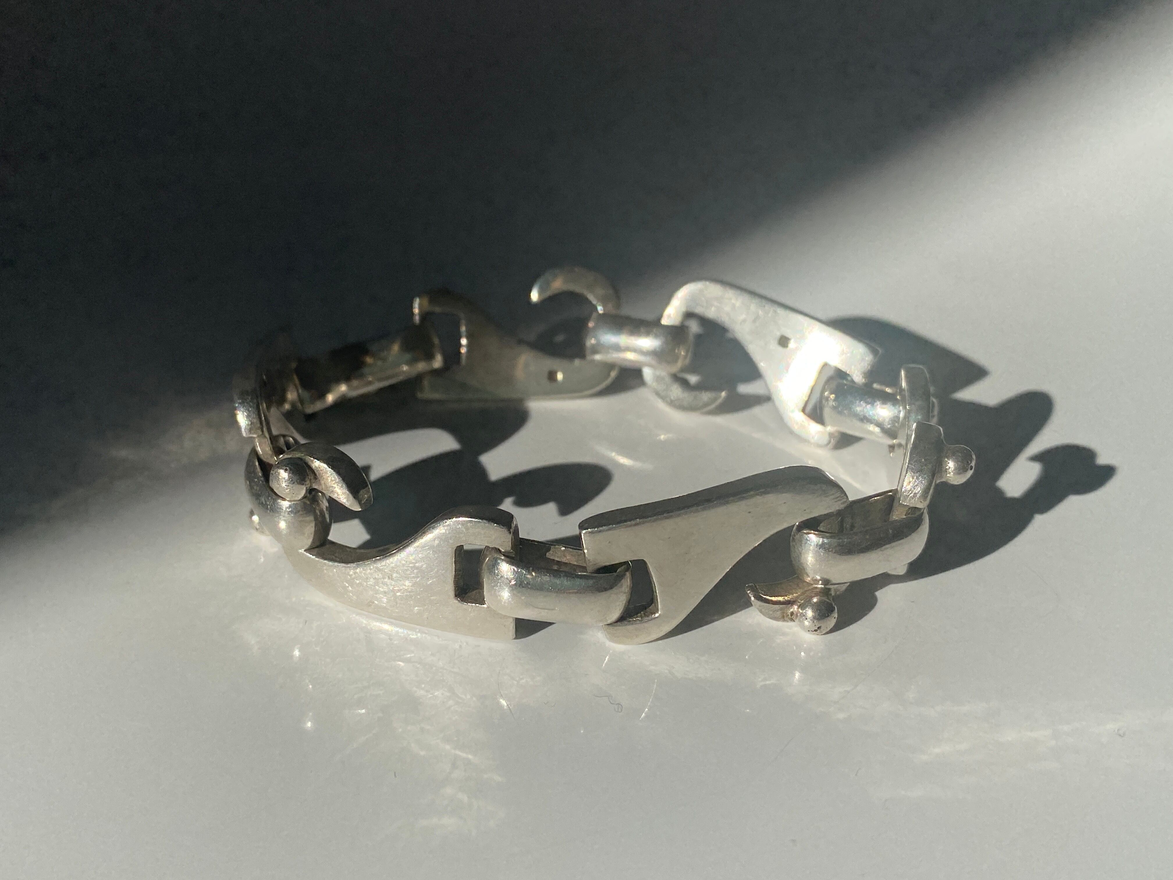 ・シルバーの光沢が際立ち、フックが連なったようなマニッシュなデザイン。コーディネートのアクセントにばっちり。