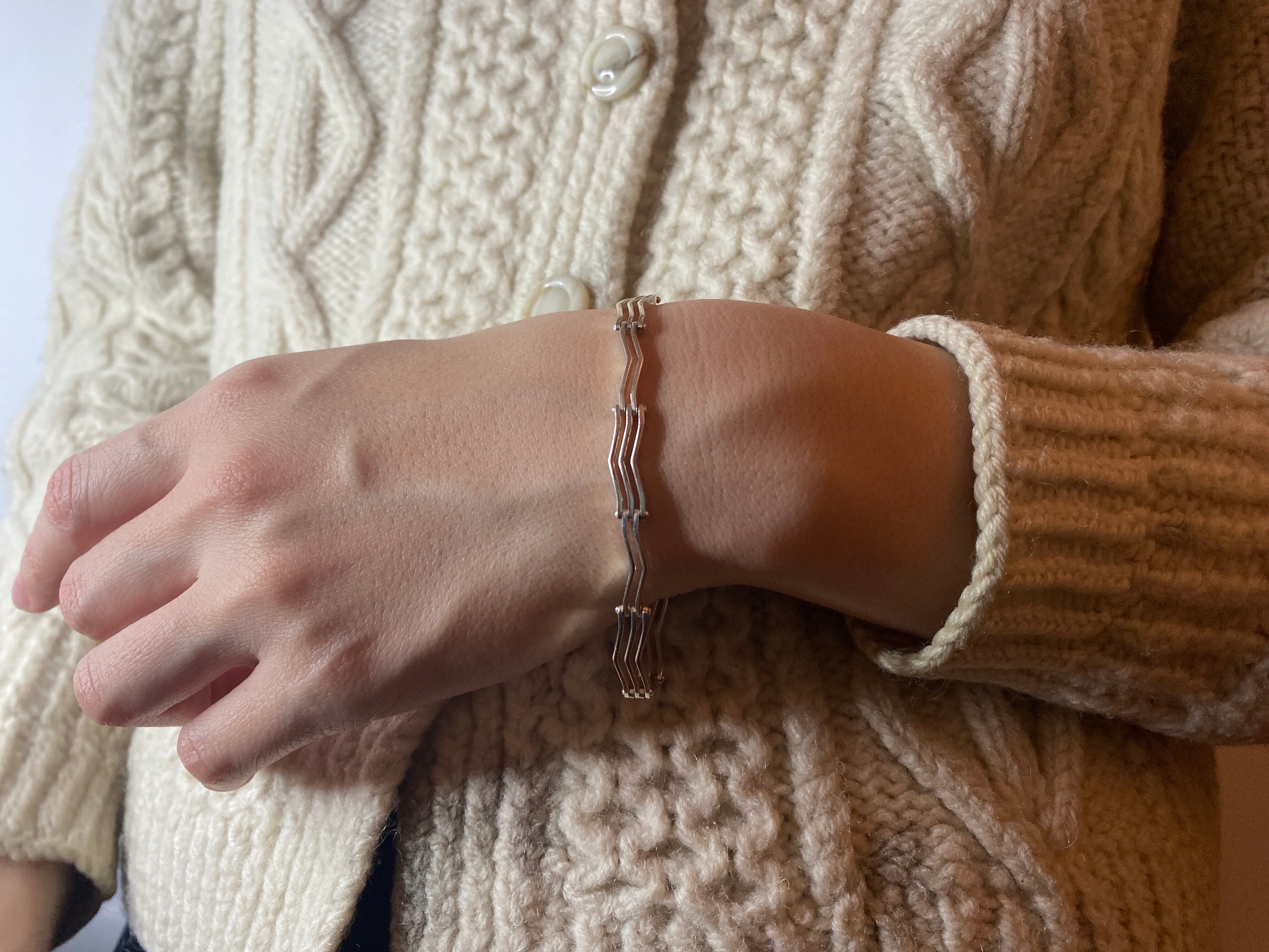 手元を華やかに彩る Silver 925 Wavy Vintage Bracelet。ロンドンで厳選して買い付けたこのブレスレットは、ジグザグのユニークな形状が特長であり、カジュアルな装いにもドレッシーなスタイルにもぴったり。シルバー925の素材を使用しており、耐久性も抜群。日常使いだけではなく、特別なシーンでも輝きを放つアイテムです!