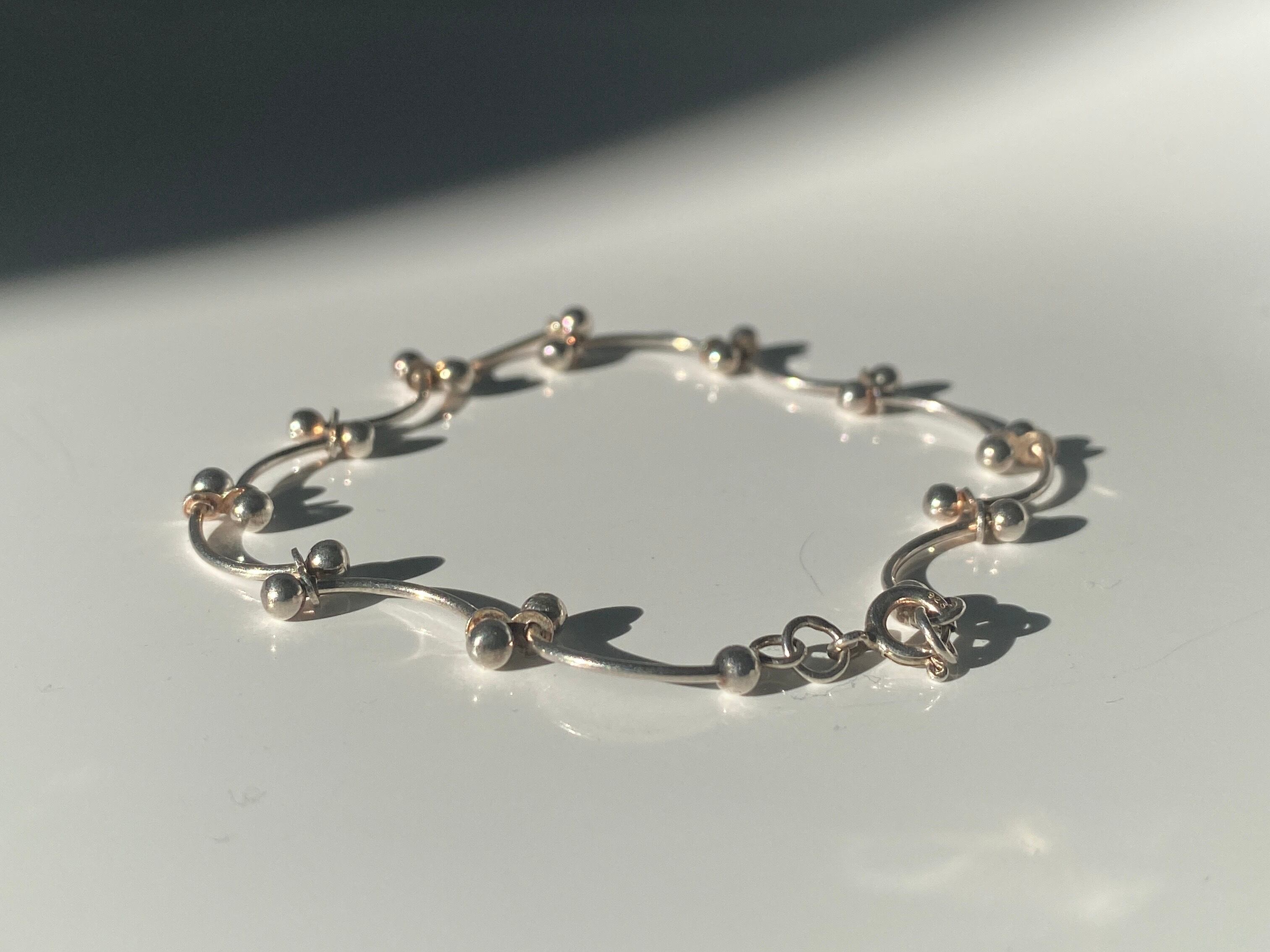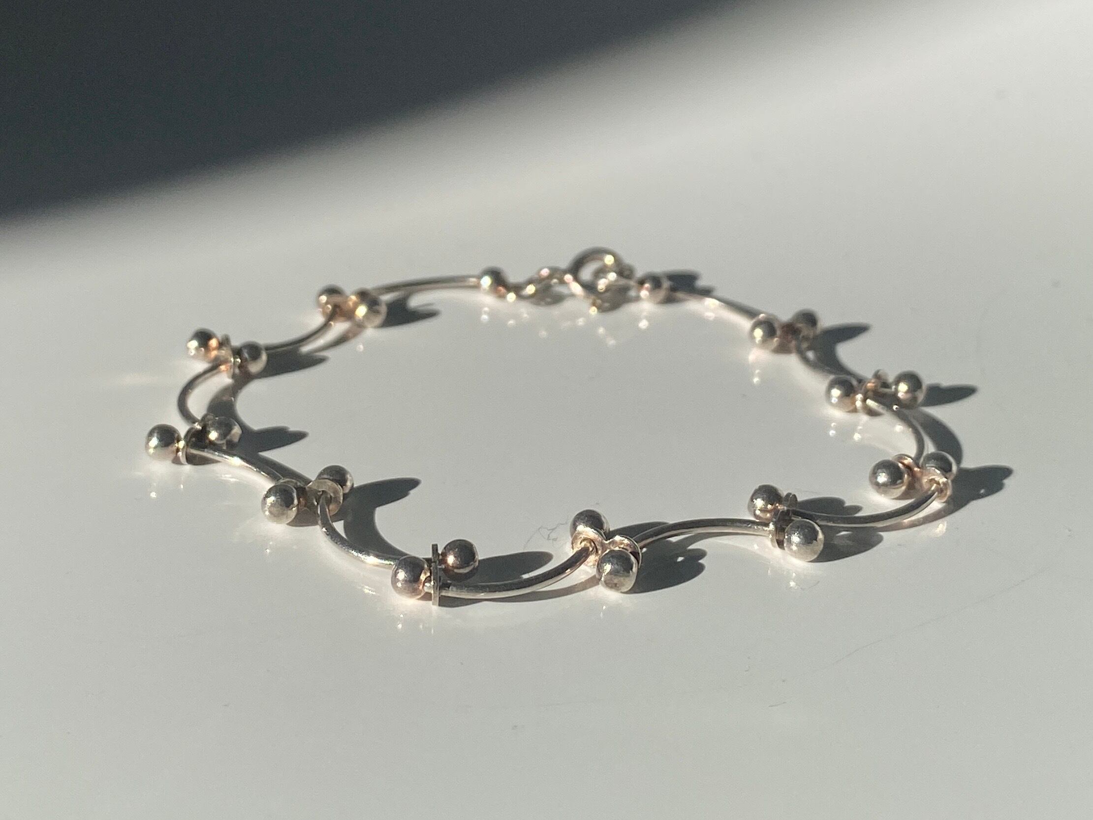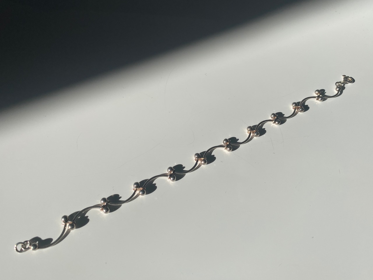 手元を優雅に彩る Silver 925 Wavy Vintage Bracelet。イギリスで厳選したこのフェミニンなブレスレットは、流れるような波形のデザインが特徴で、フォーマルな装いにもぴったりのアイテムです。シルバー925を使用し、軽やかな着け心地ながらも存在感を放ちます!