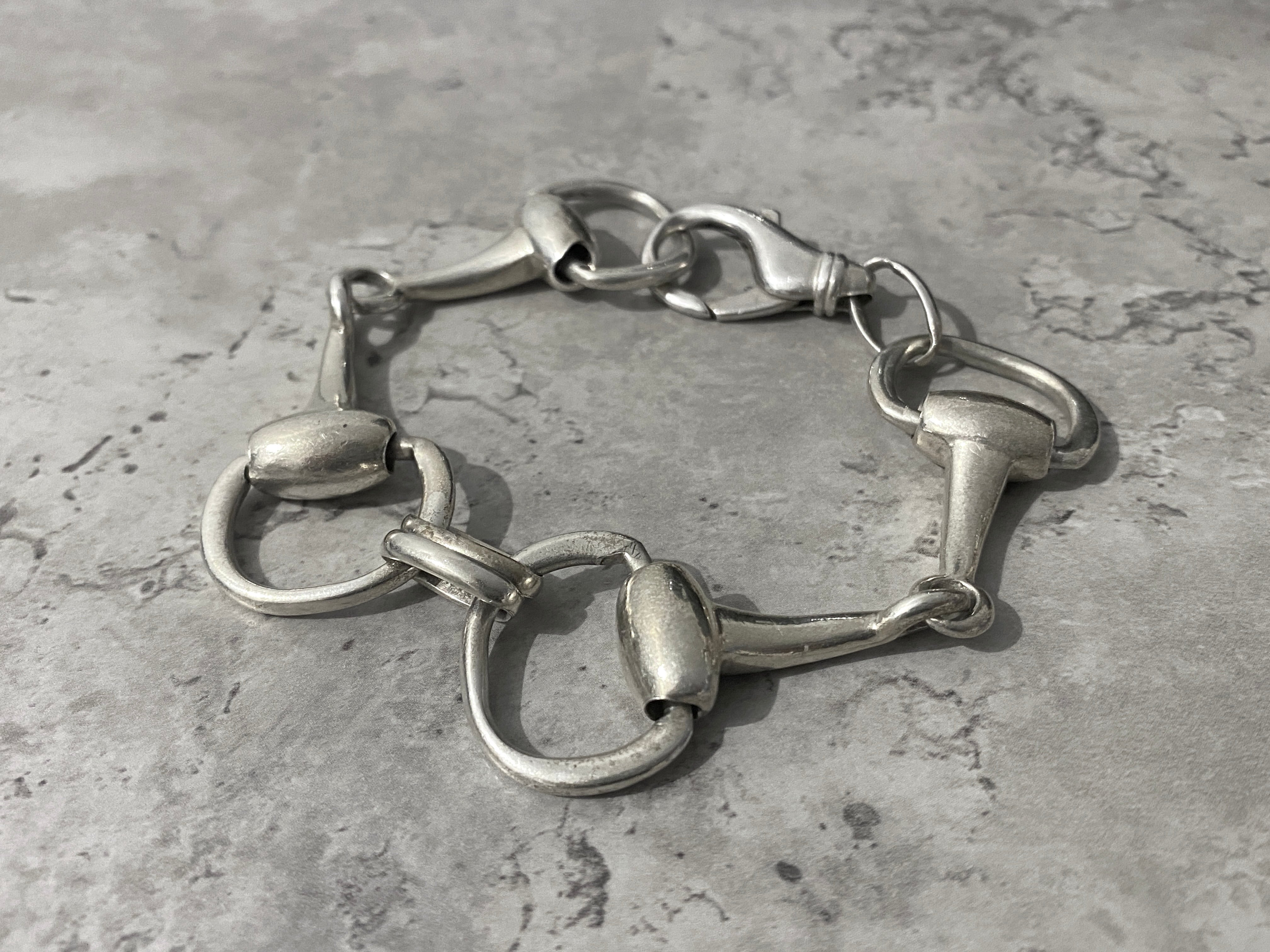 (B-19) 925 Sterling Silver Snaffle Chain Bracelet