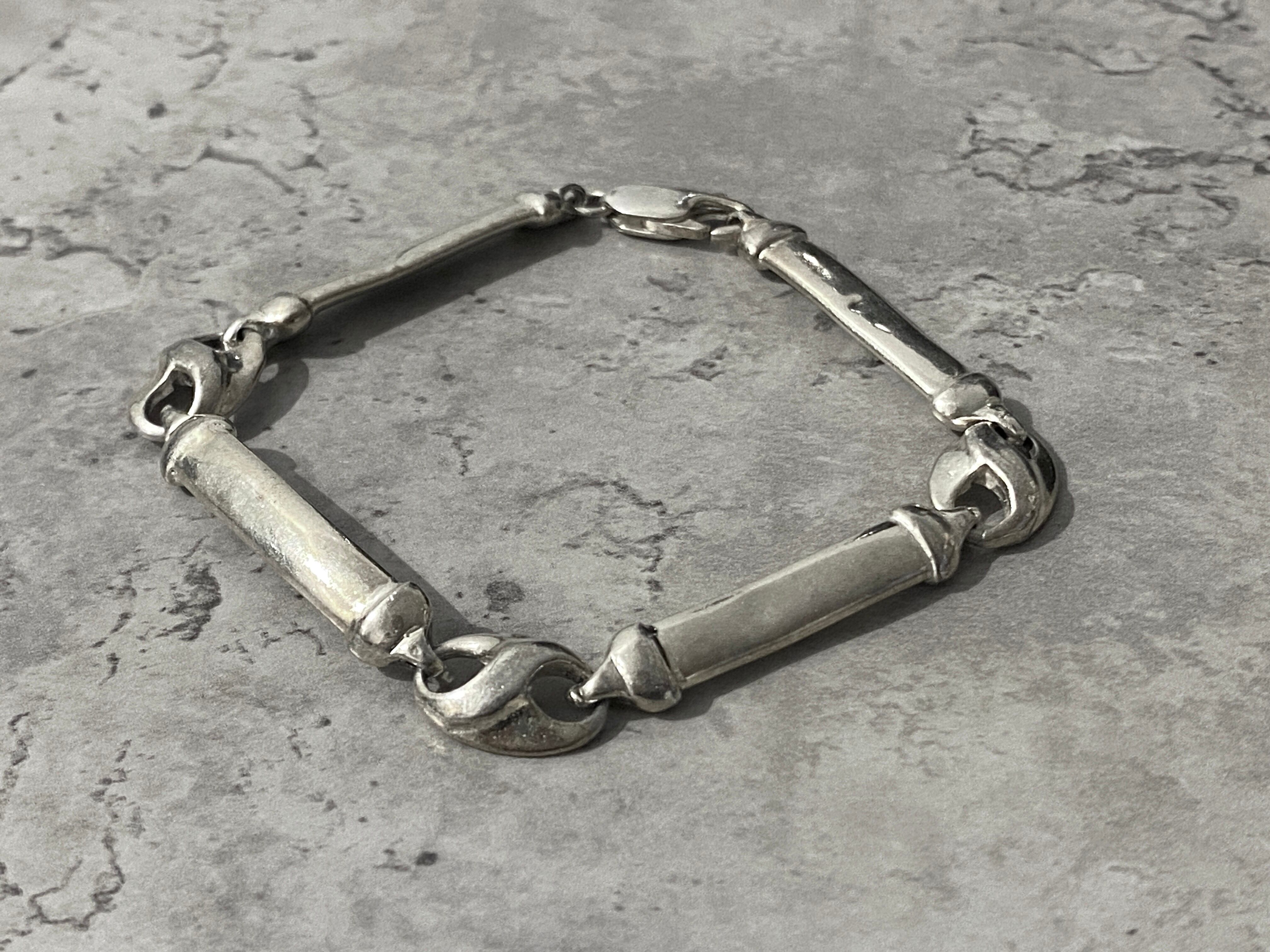 ユニークなデザインが魅力のVintage coffee beans bracelet。イギリスで厳選して買い付けたこのブレスレットは、コーヒー豆をモチーフにした独特な形状が特徴で、他にはない個性的な印象を与えます。高品質なシルバー925を使用しているため、心地よい着け心地を楽しむことができます!