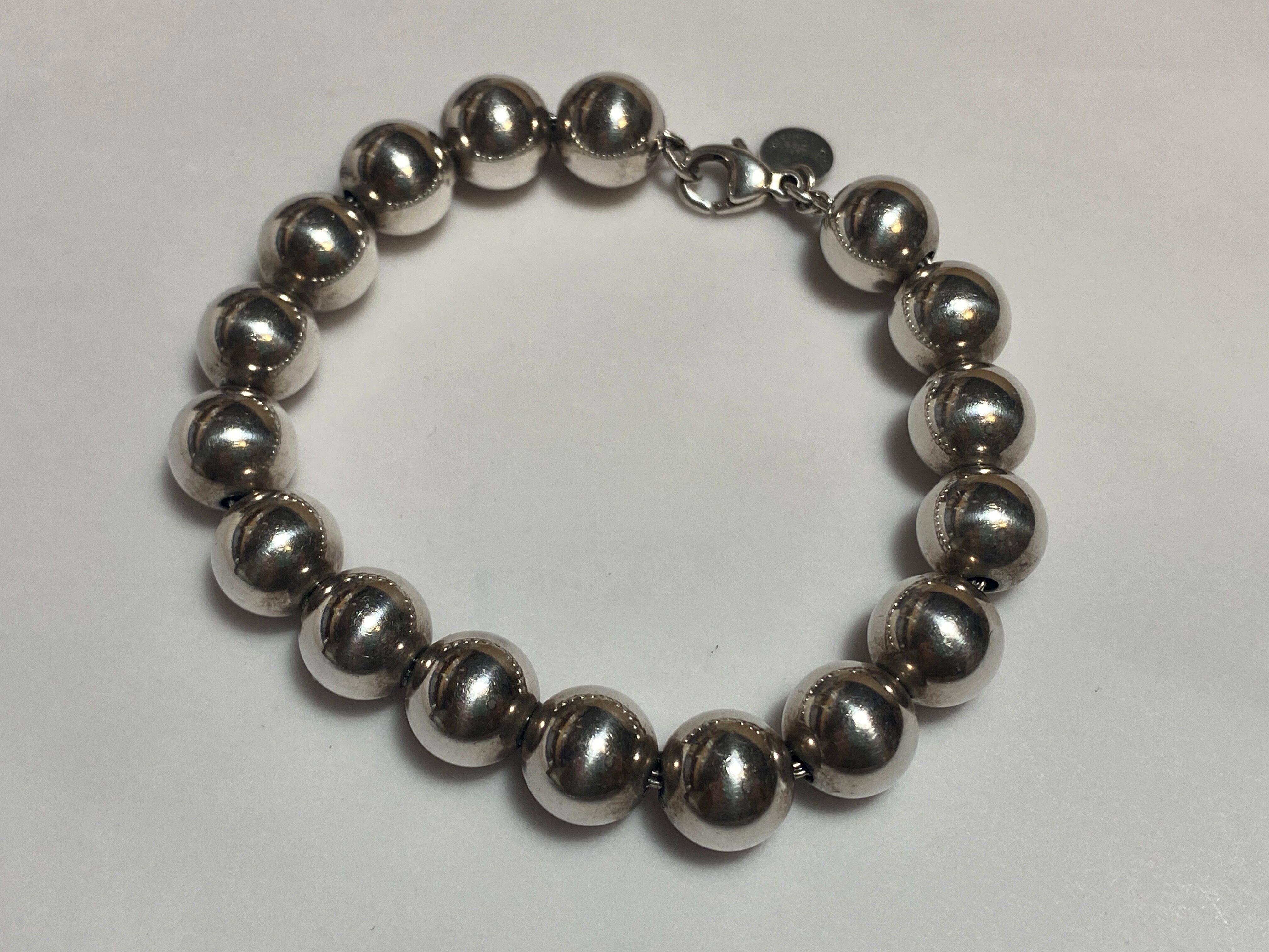(B-37) 925 Silver Tiffany 8mm Bead Bracelet