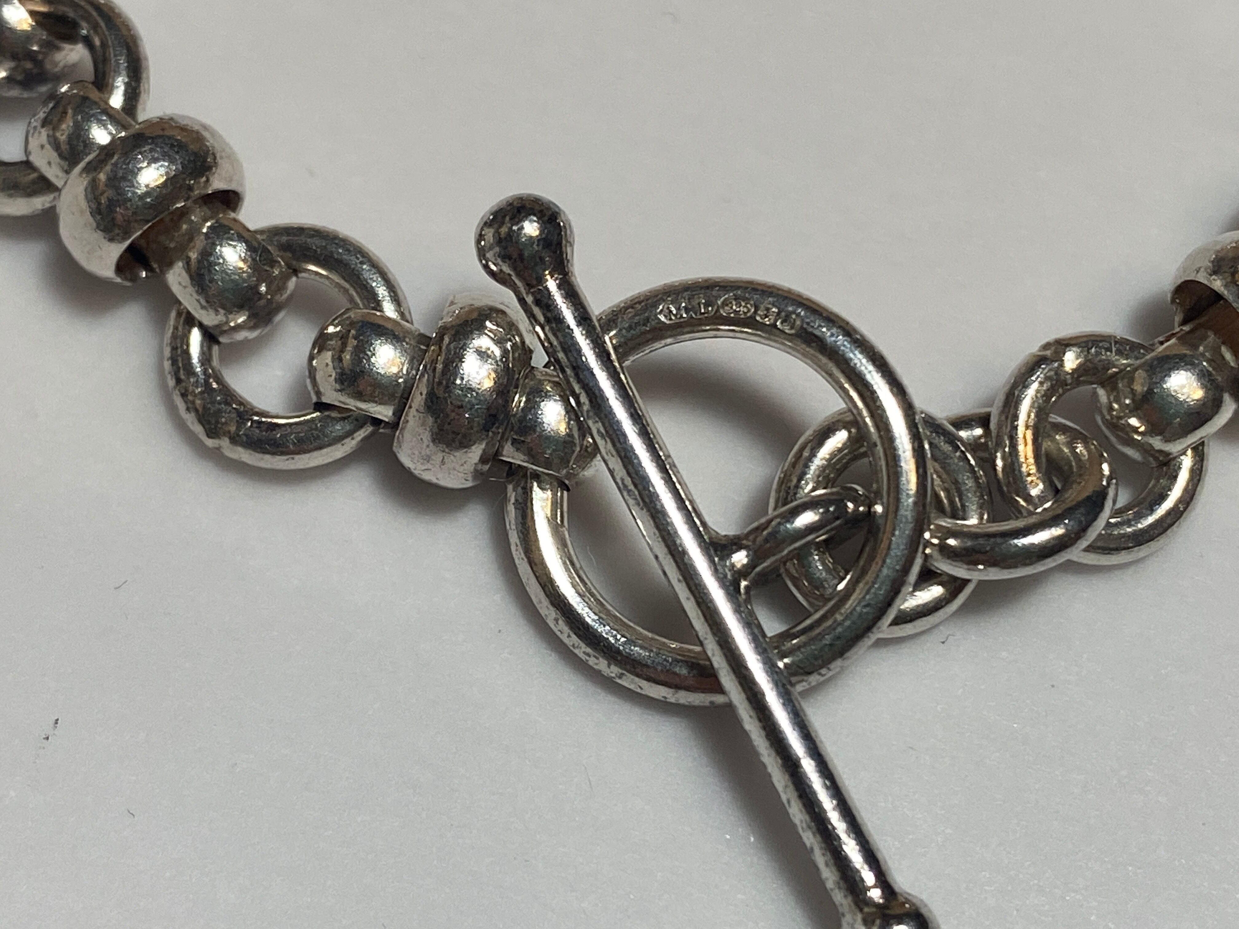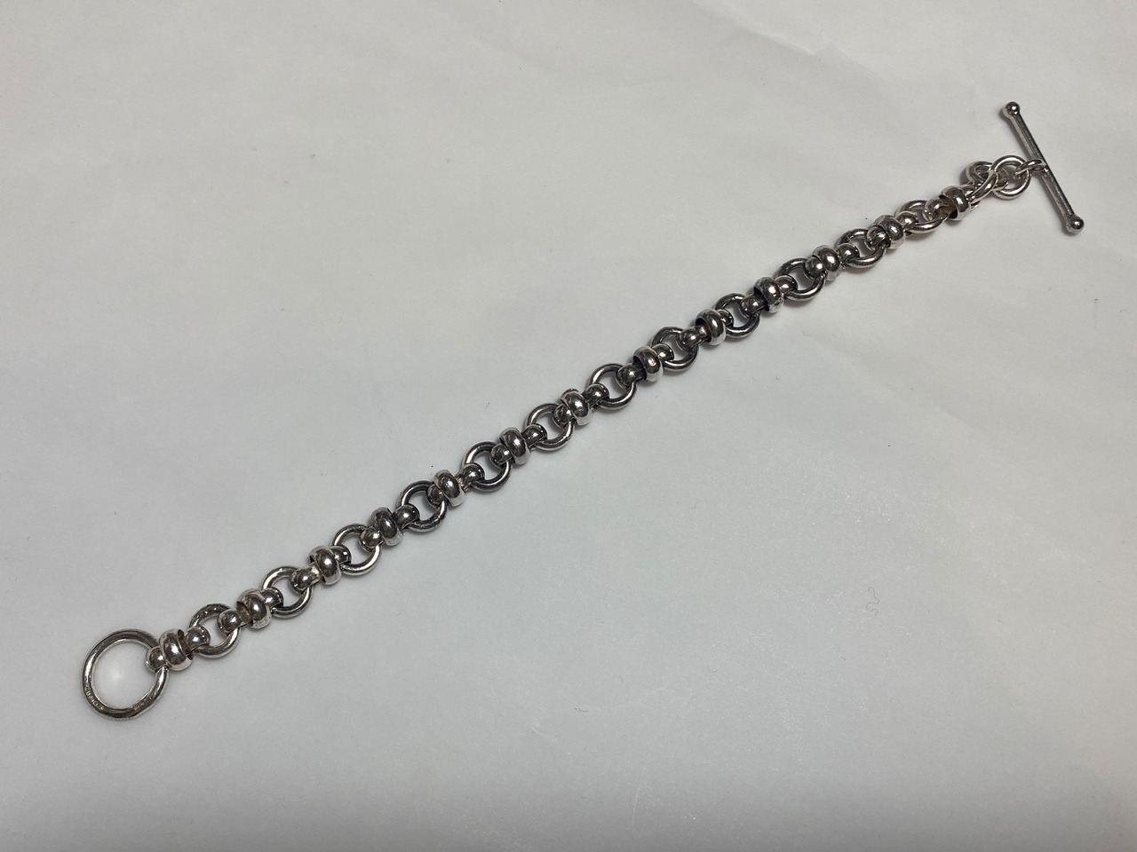 イギリスで厳選して買い付けたこの925シルバー トグル留めのチェーンブレスレットは、特徴的な個性を持つチェーンデザインが魅力です。スタイリッシュな印象を与え、コーディネートを一層引き立てる一品となっています!