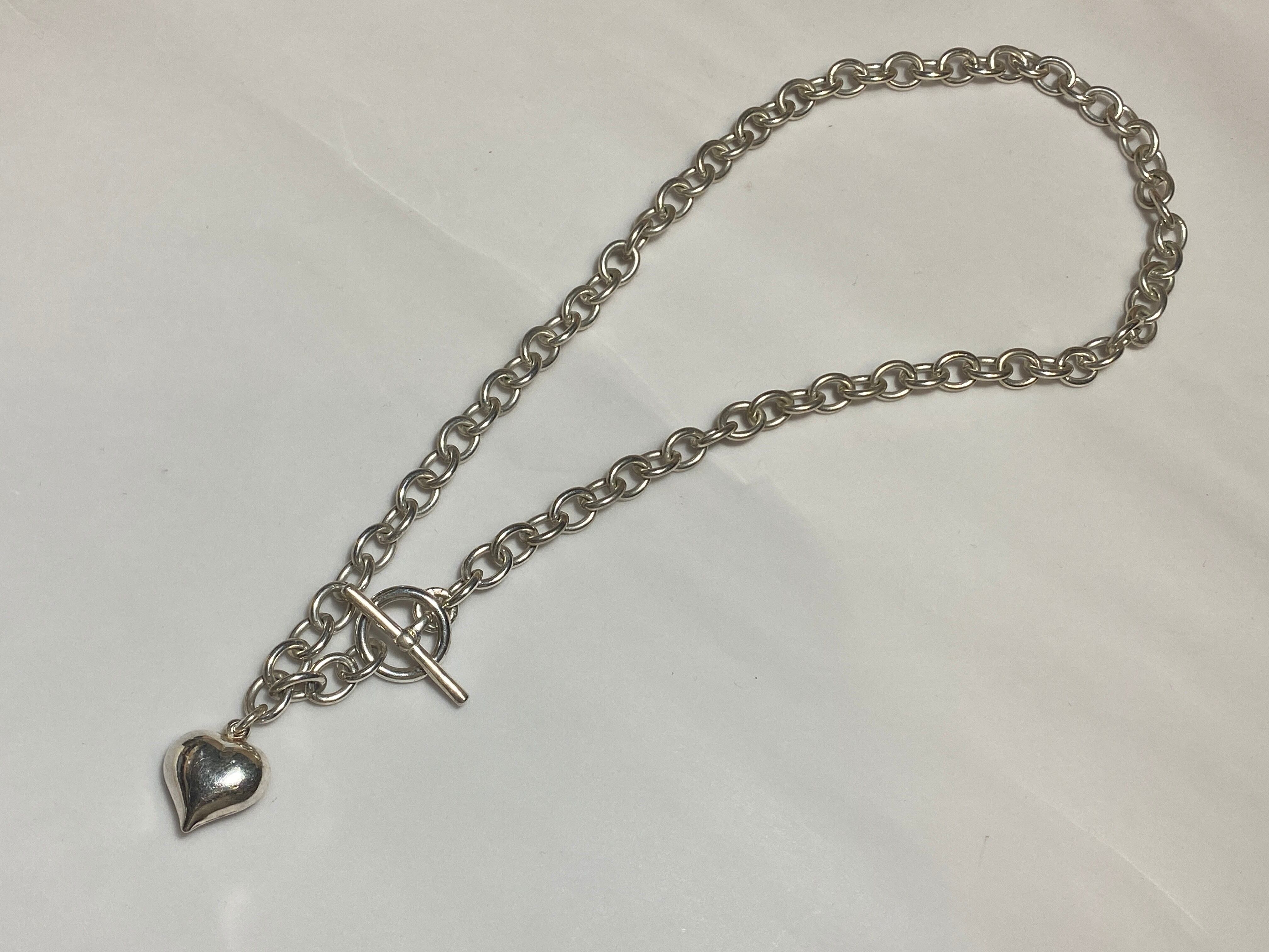 イギリスで買い付けたこのハートトグルネックレスは、愛らしいハート型のチャームが特徴的で、シンプルながらも存在感のあるデザインが魅力です。シルバー925の輝きがさりげなく肩を運び、どんなコーディネートにもプラスできるアイテムとなっています!