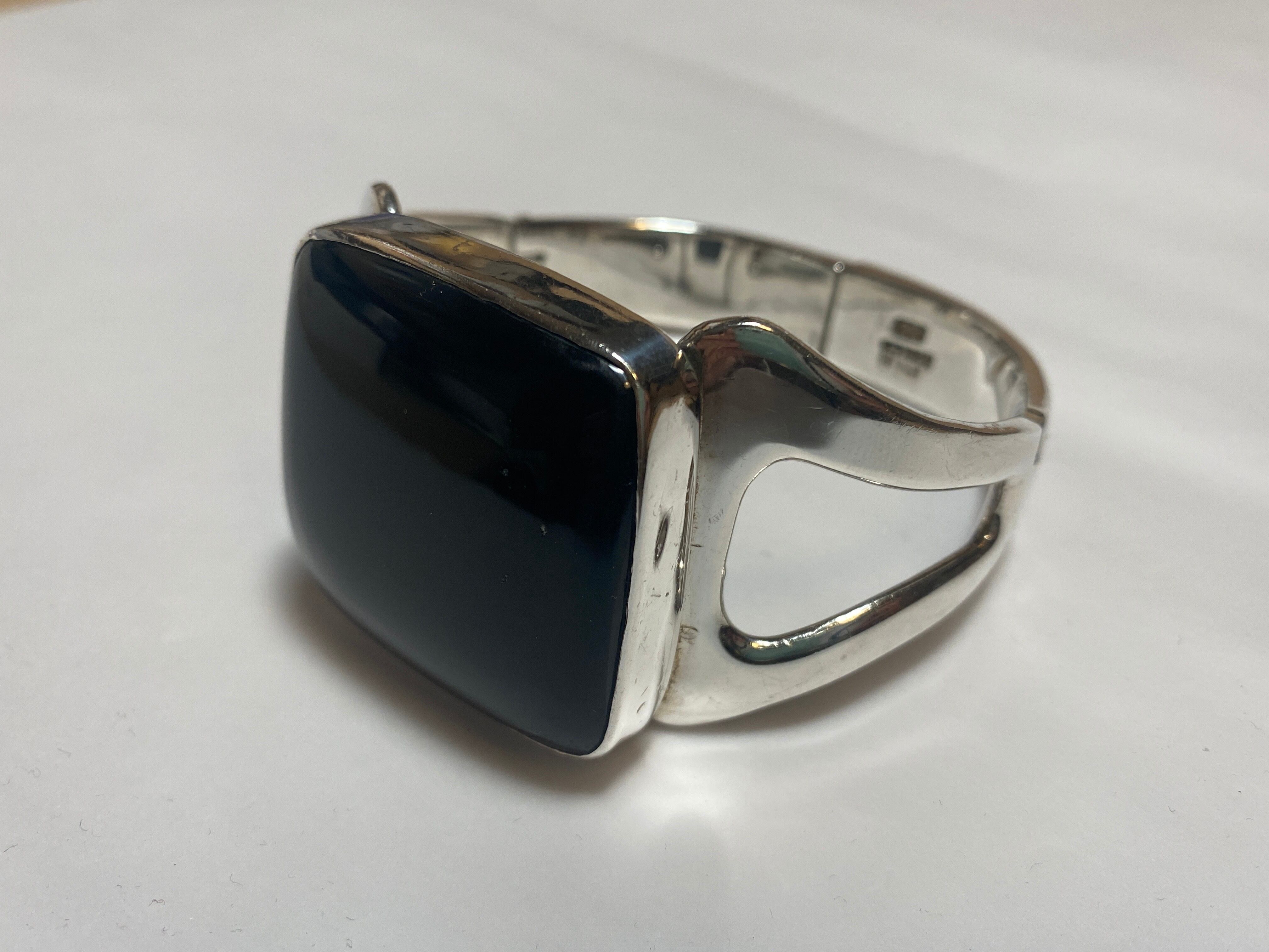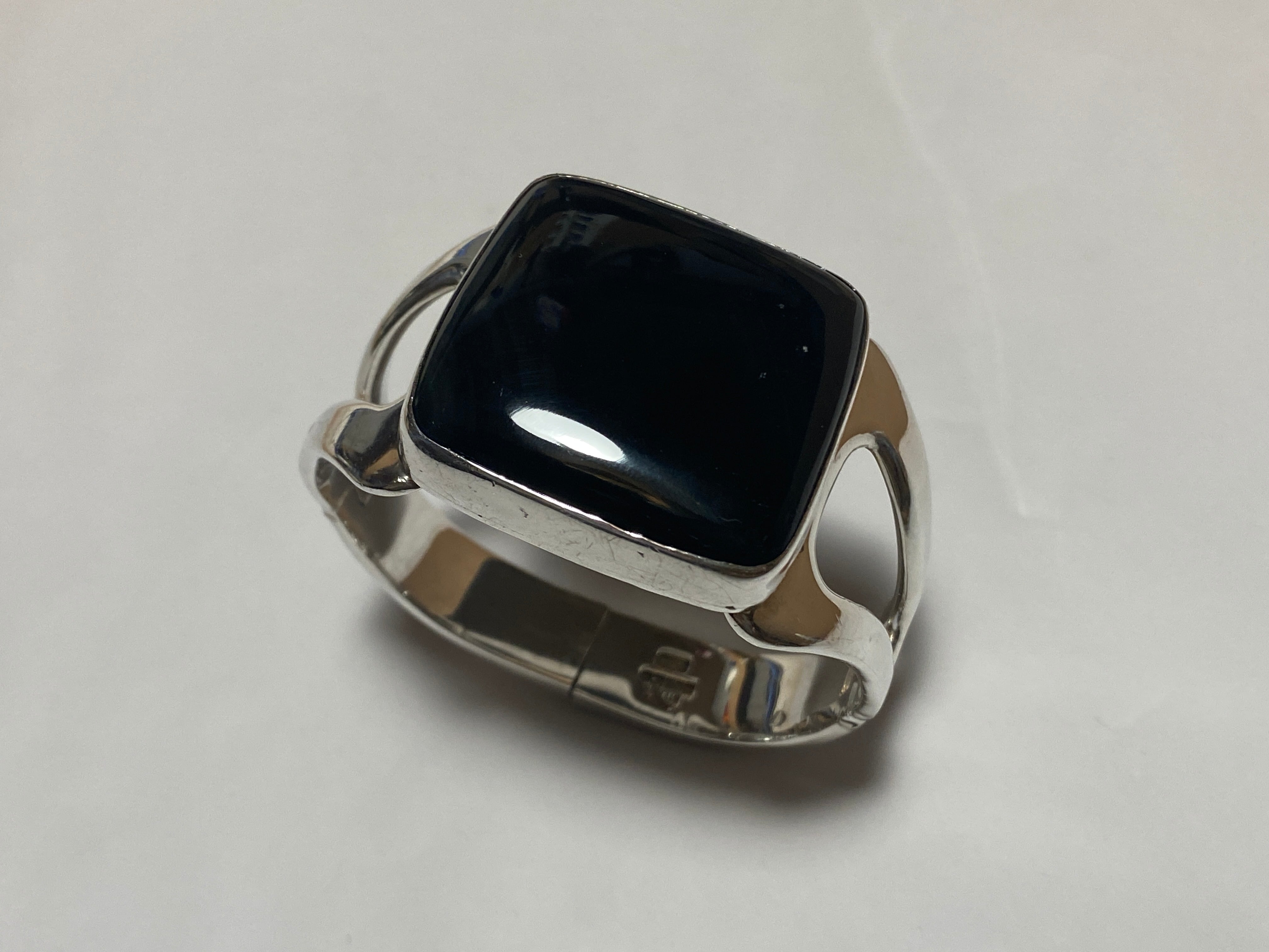 ・シルバー925とオニキスを使用。このバングルはメキシコからの特別な買い付けによる一点物で、そのユニークな魅力を存分にお楽しみいただけます。